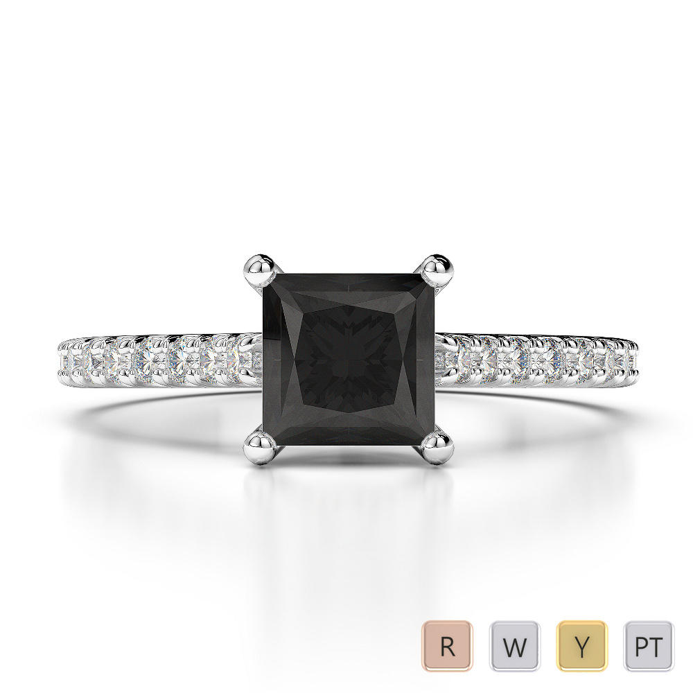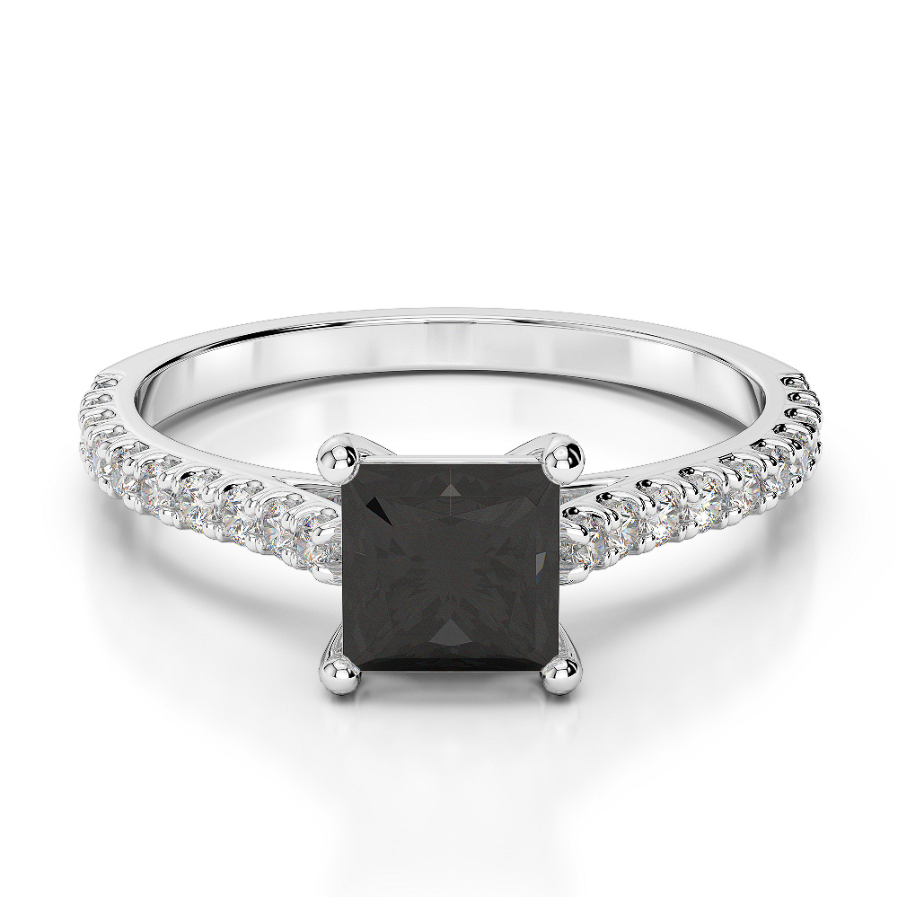 Indulge in the elegance of our Black Diamond And Diamond Engagement Ring, featuring an Princess Cut Black Diamond secured in a classic prong setting. Flanked by two dazzling side diamonds, this masterpiece radiates love and sophistication, with brilliance that sparkles from every angle.