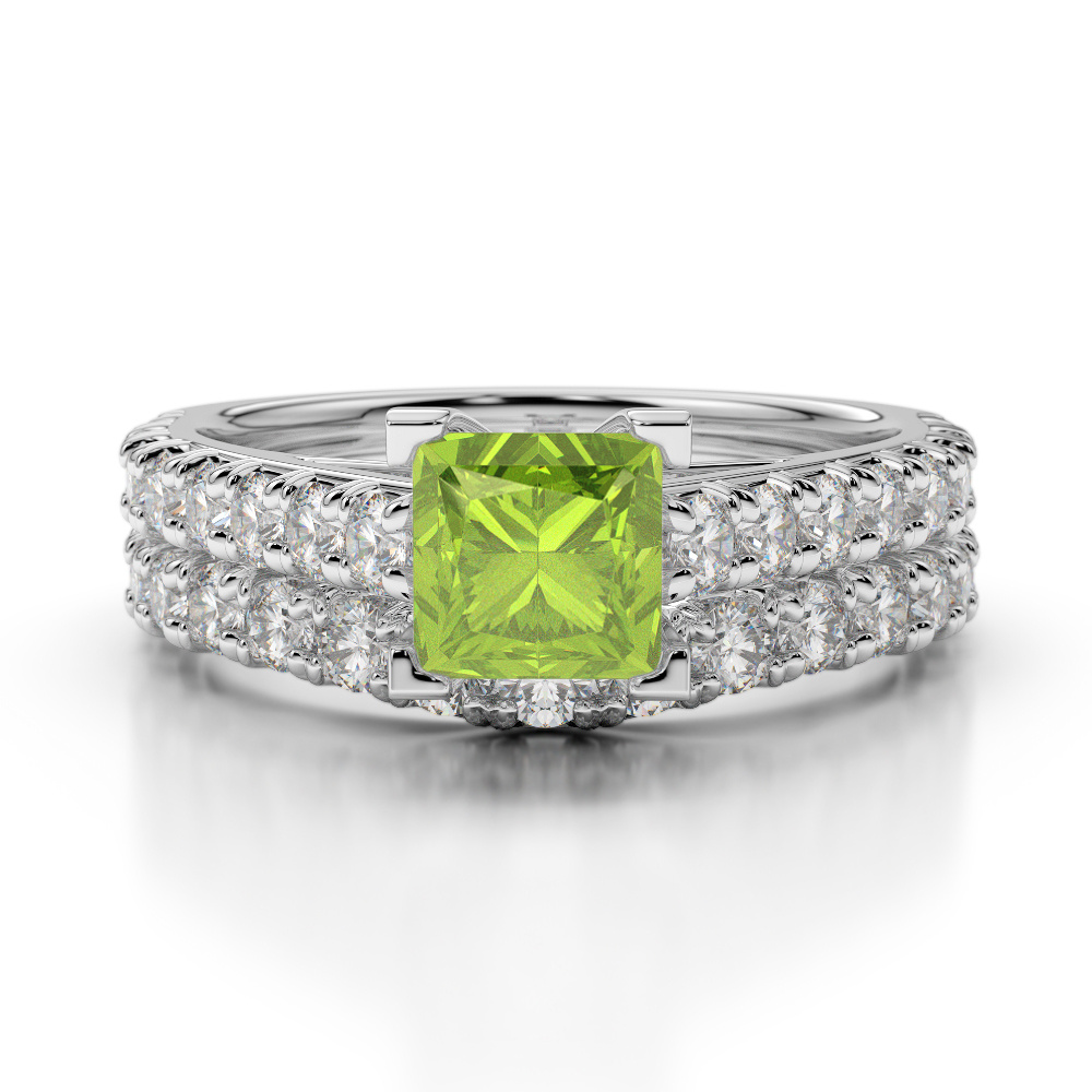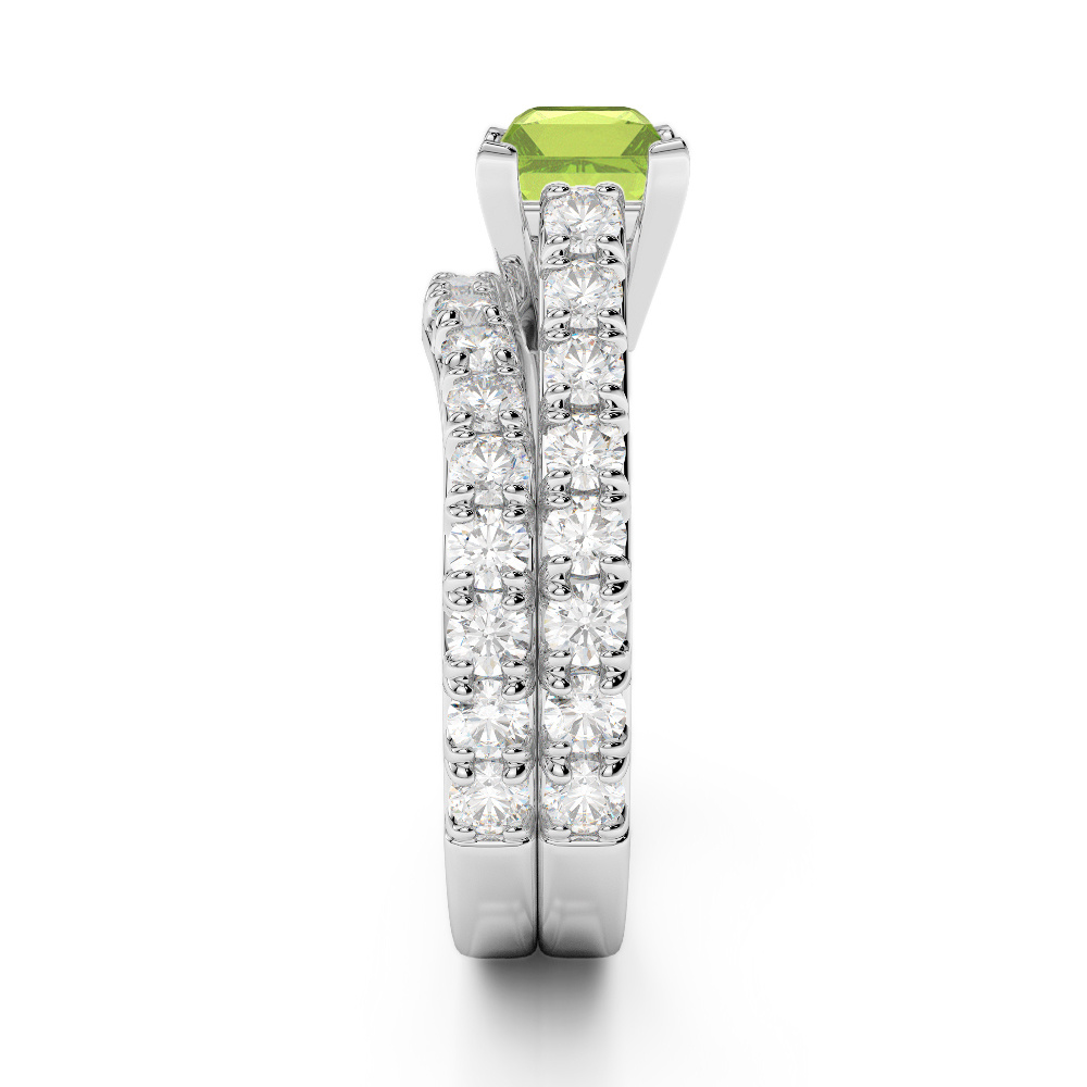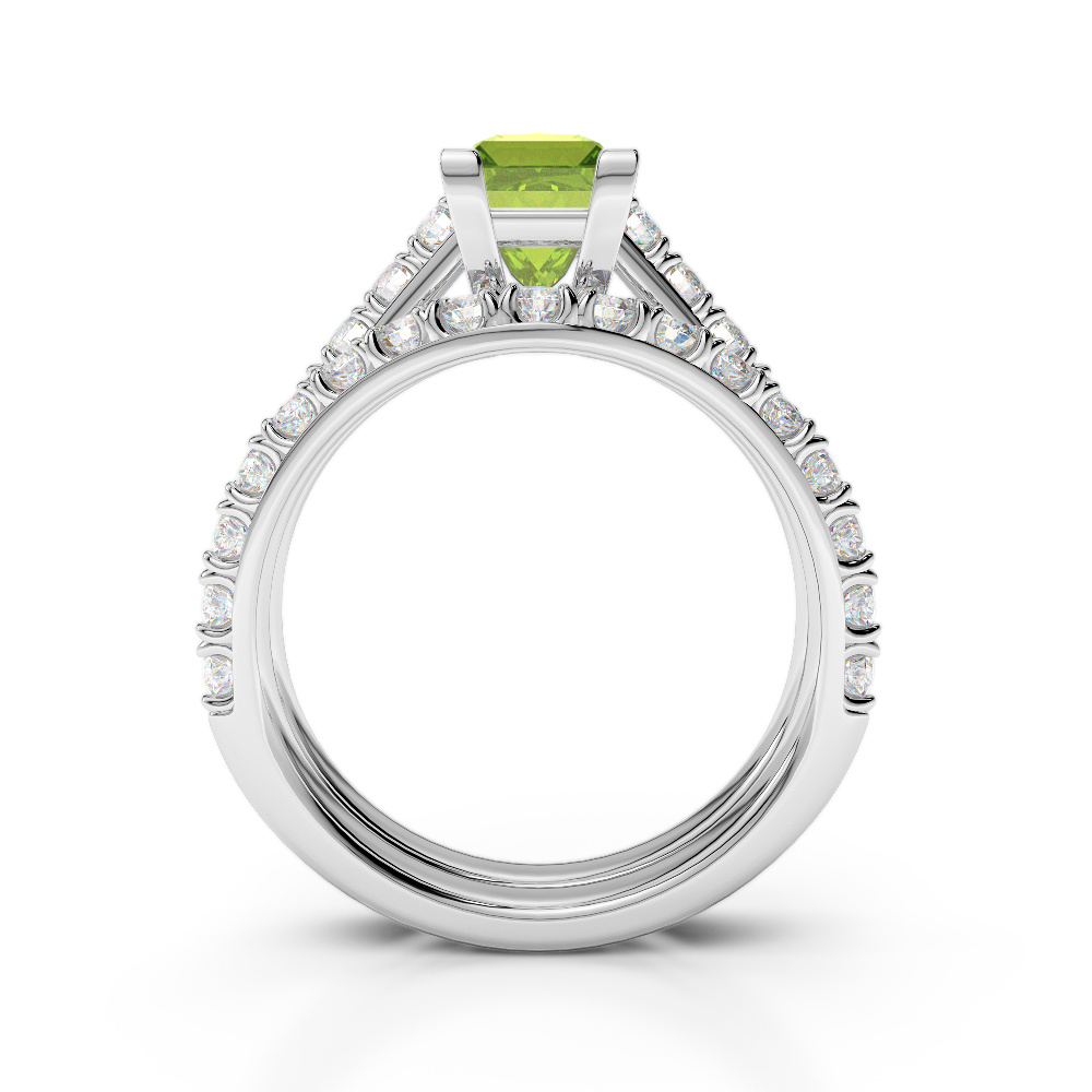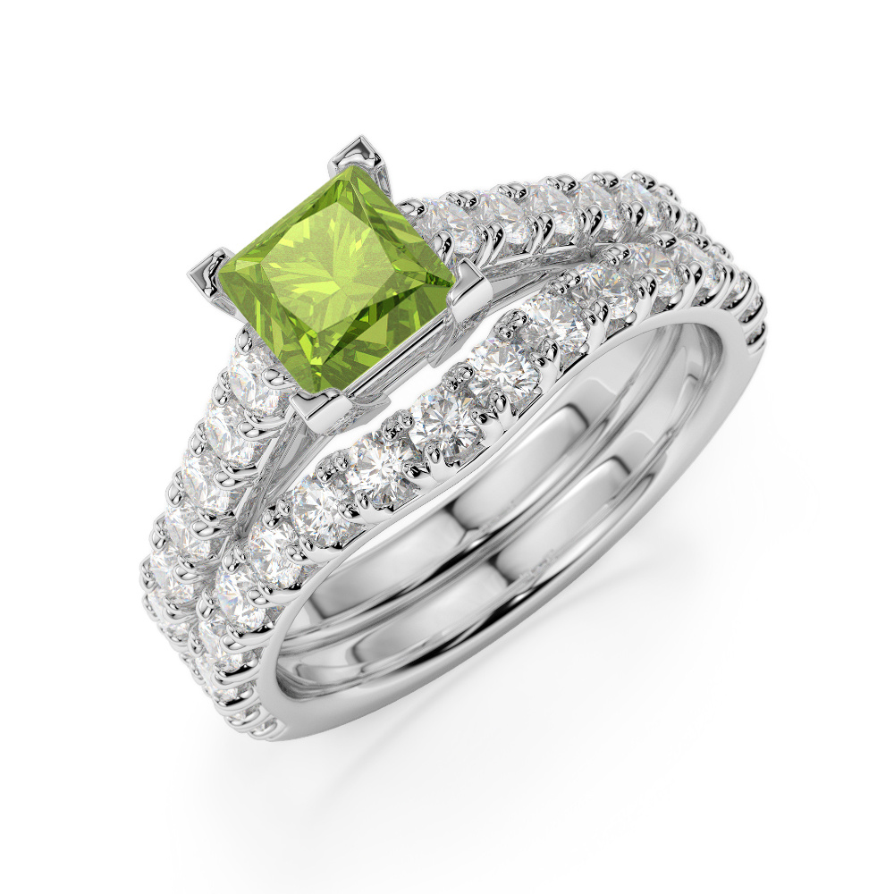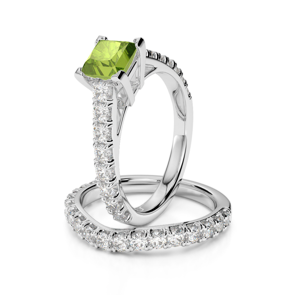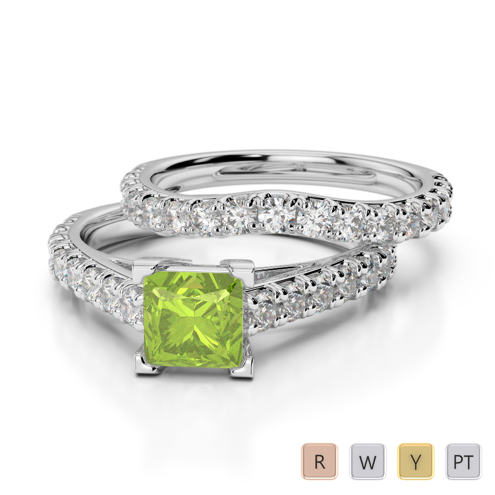 Princess Cut Peridot & Round Diamond Bridal Set Ring 0327