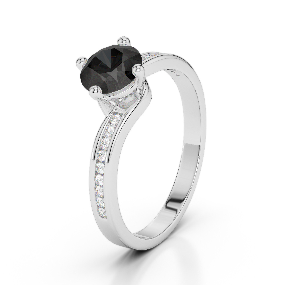 Prong and Channel Set Engagement Ring With Black Diamond 0260