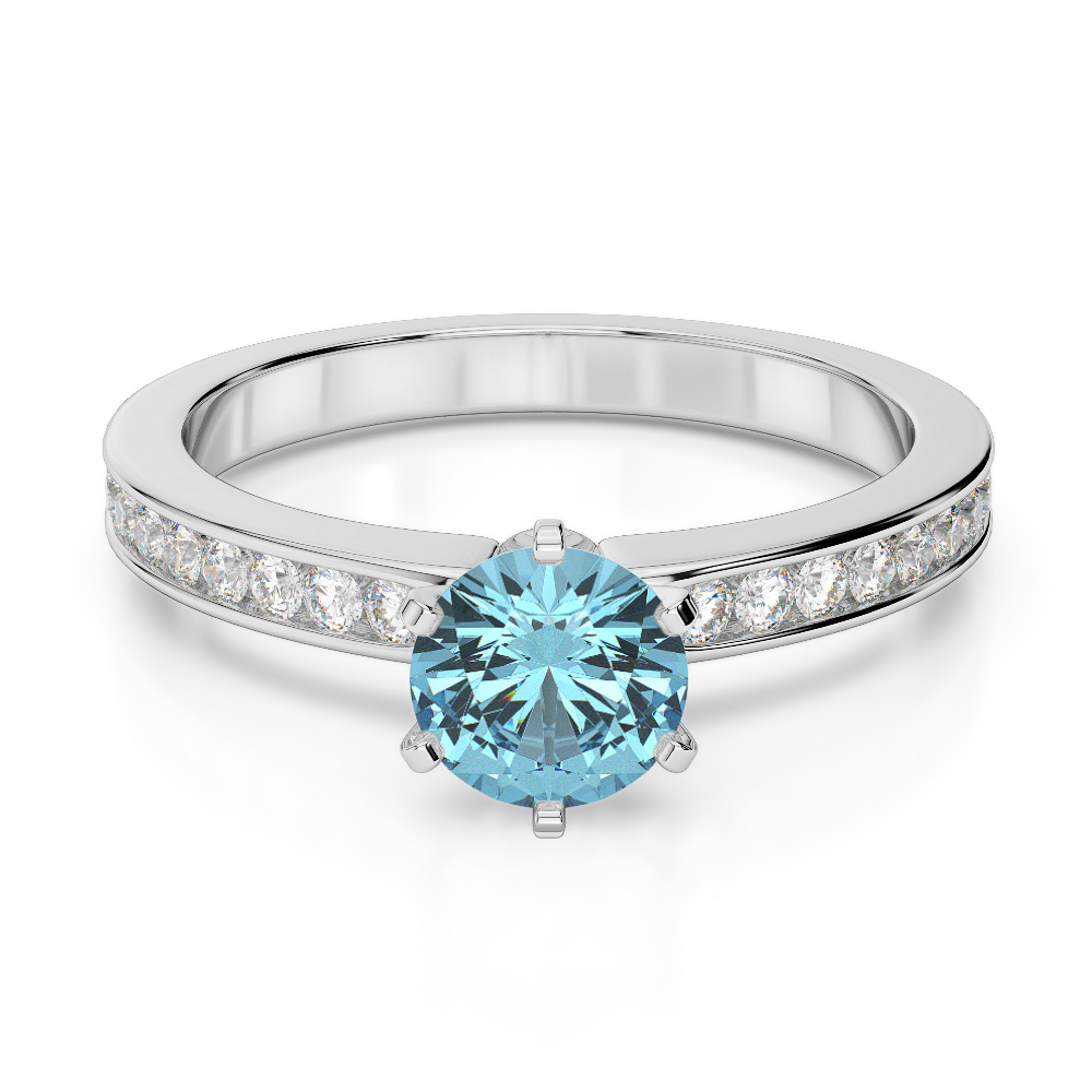 Prong Set Aquamarine and Channel Set Diamond Engagement Ring 0212
