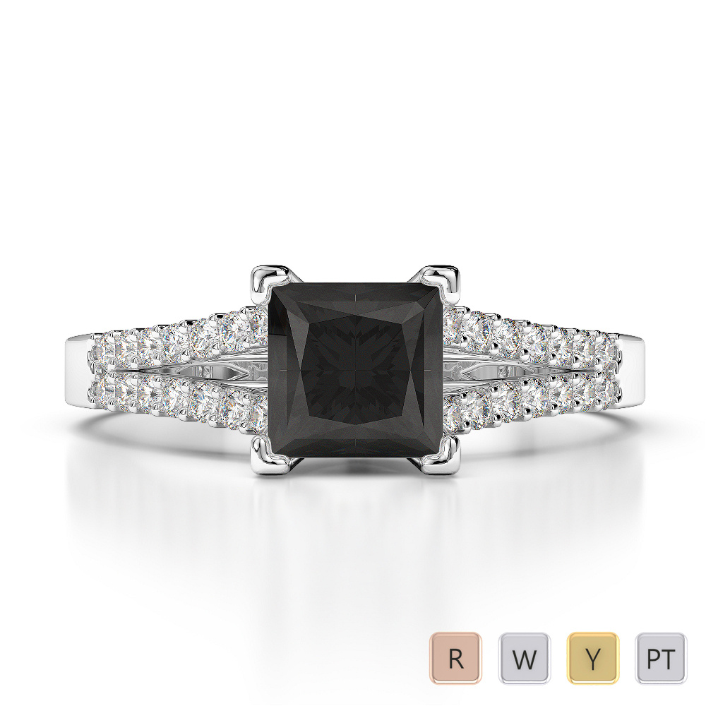 Indulge in elegance with our Princess Cut Black Diamond Diamond Engagement Ring, showcasing a regal Black Diamond in a secure prong setting that allows light to pass freely through its facets, enhancing its natural brilliance. A halo of sparkling diamonds surrounds the centerpiece, creating a timeless display of charm and light.