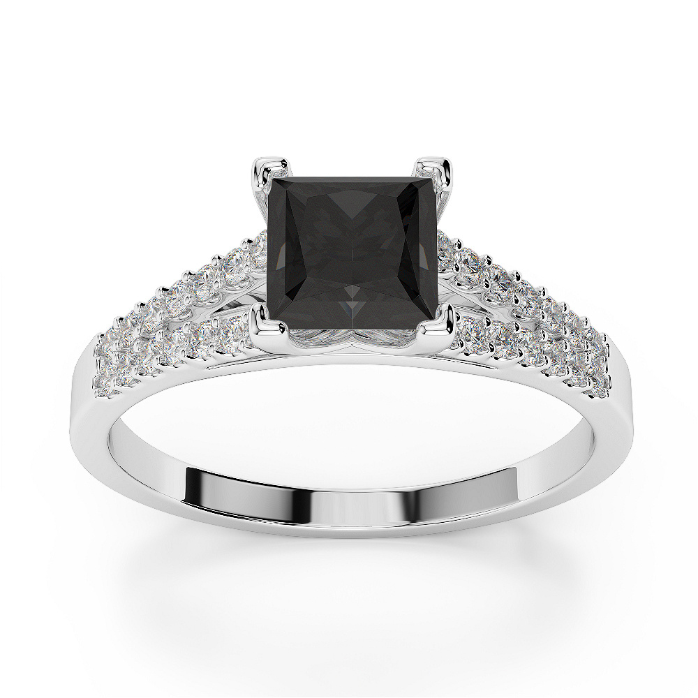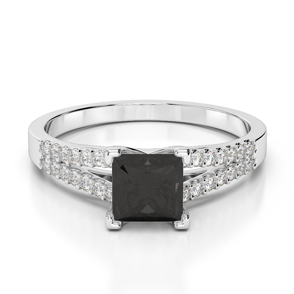 Prong Set Black Diamond Engagement Ring 0209