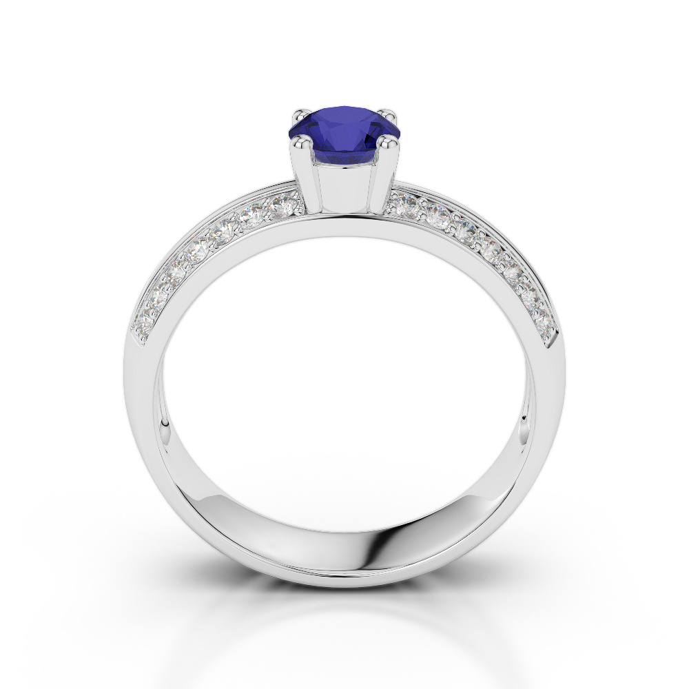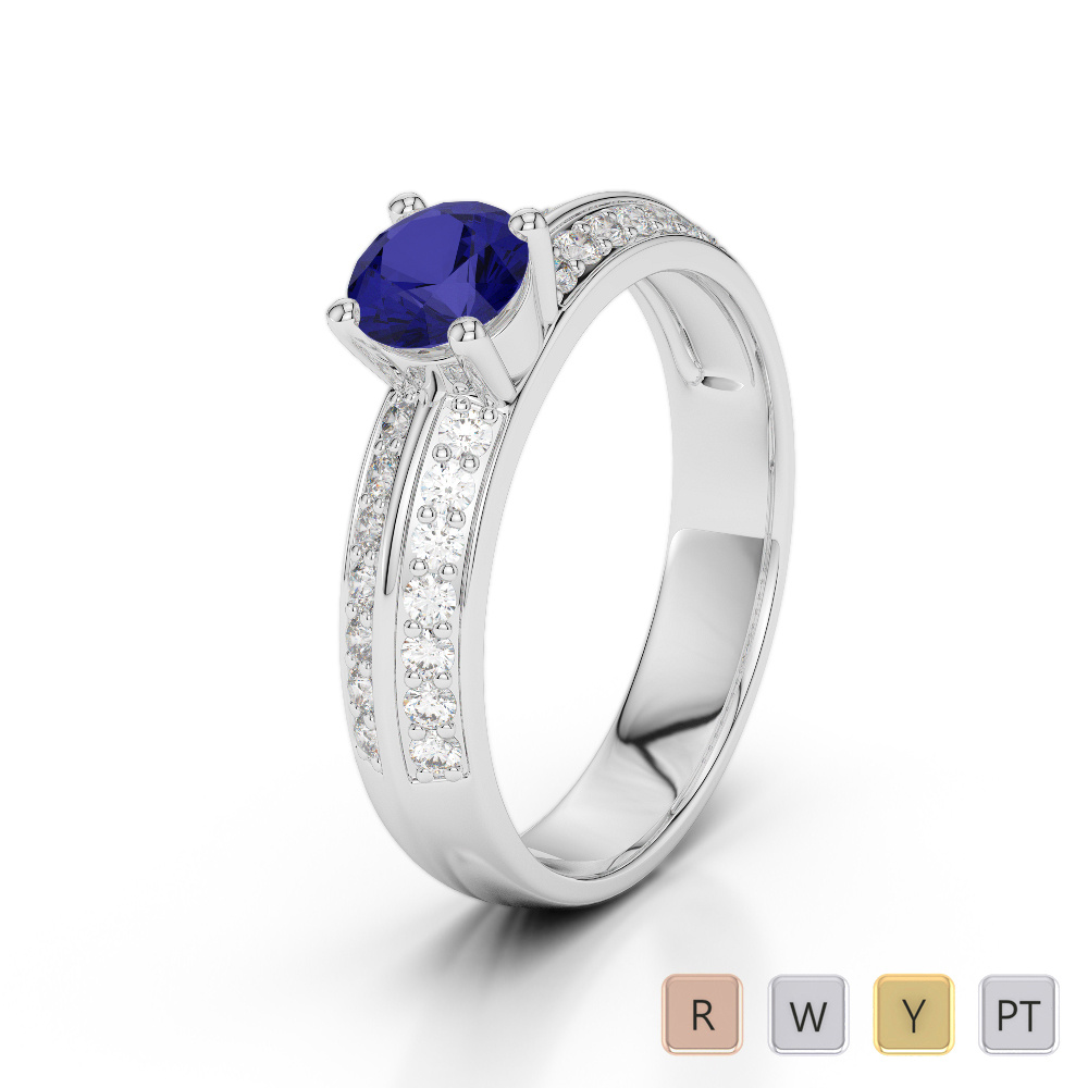 Indulge in the timeless elegance of our exquisite Blue Sapphire And Diamond Engagement Ring, featuring a stunning round brilliant cut diamond that captures the essence of romance and commitment. Securely held in a classic prong setting, the diamond is elevated to allow light to enter from every angle, maximizing its sparkle and brilliance. Set in lustrous gold, this ring is a perfect embodiment of sophistication and luxury, designed to dazzle with every glance. The expertly crafted band enhances the diamond's radiance, making it a true symbol of the eternal love you share.