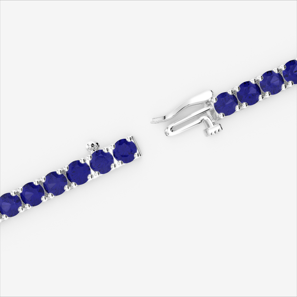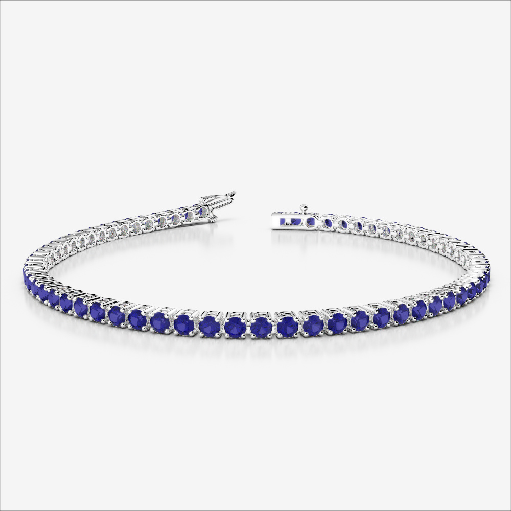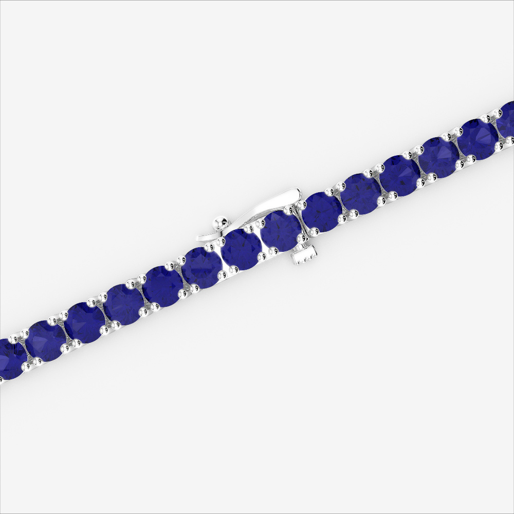 A timeless symbol of grace and brilliance, this Round Cut Blue Sapphire Tennis Bracelet in polished gold is designed to captivate. Each meticulously selected round Blue Sapphire is set in a secure prong setting, allowing maximum light to pass through and enhance its natural sparkle.