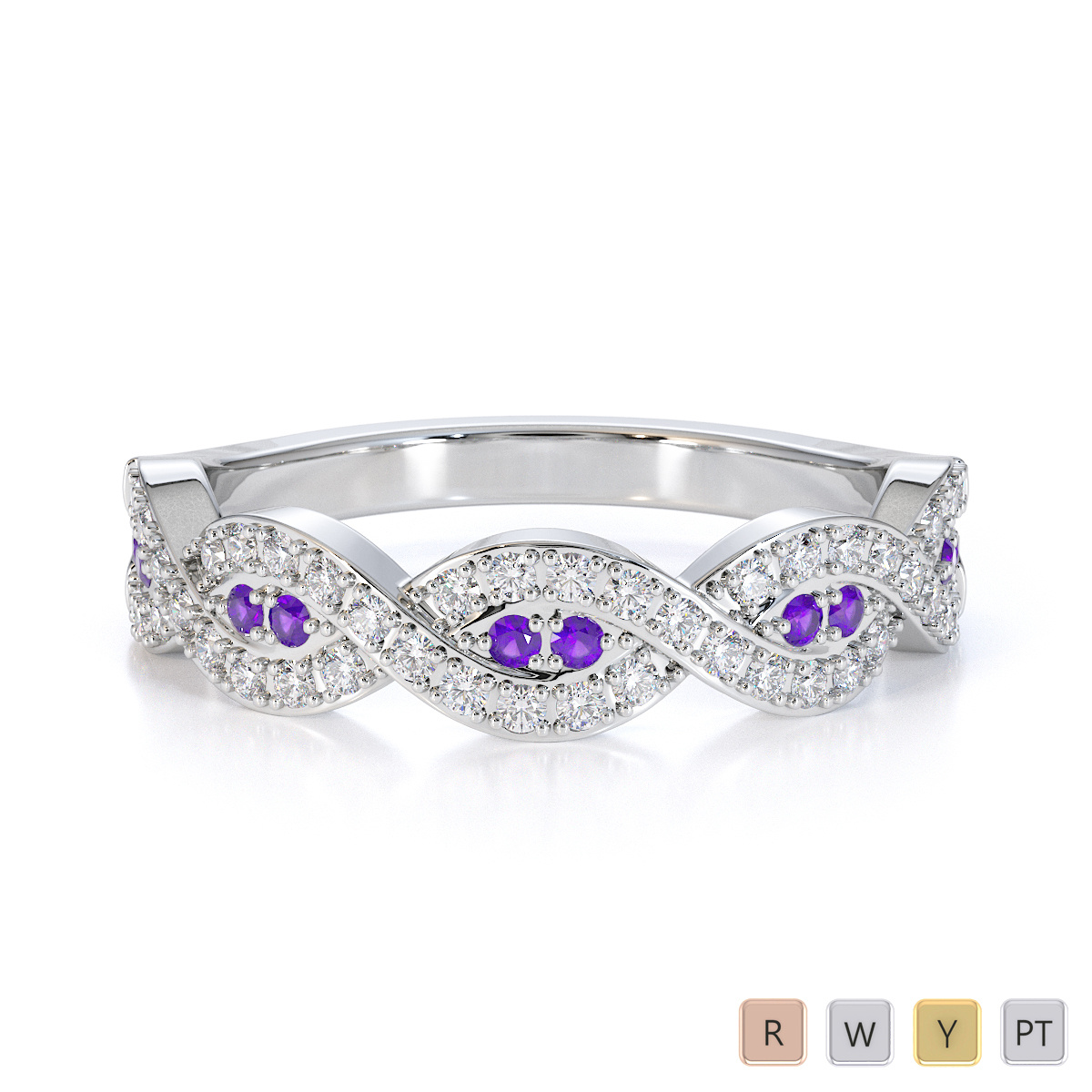 Prong Set Diamond & Amethyst Half Eternity Ring 0423