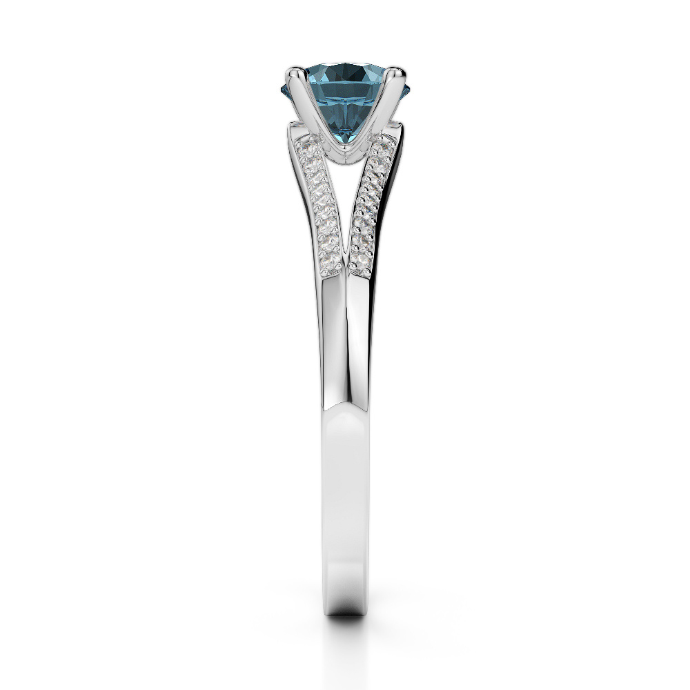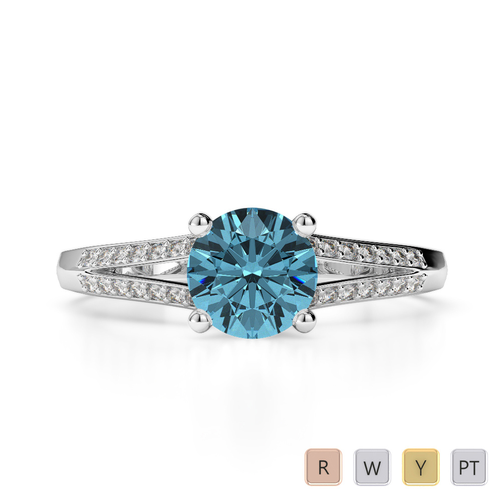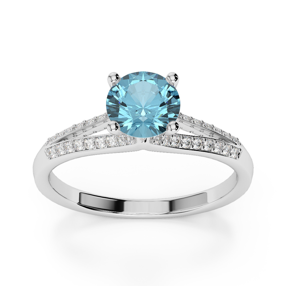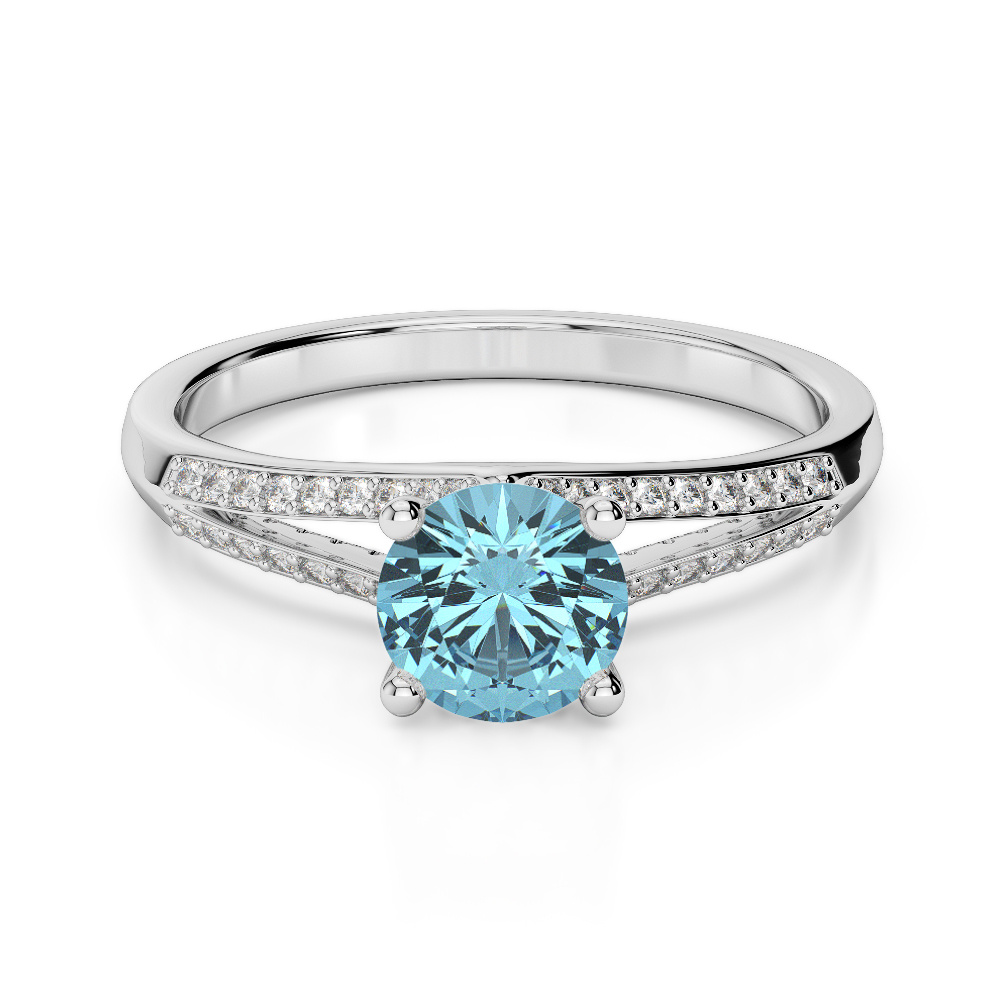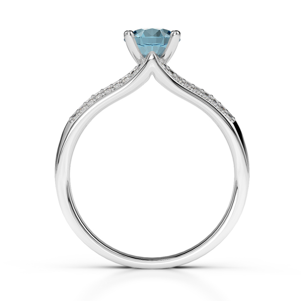 Prong Set Diamond and Aquamarine Engagement Ring 0276