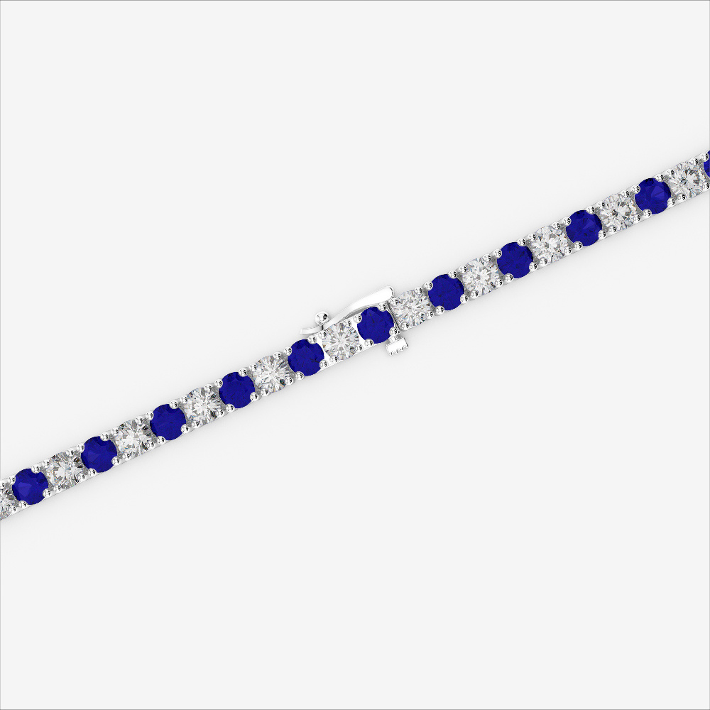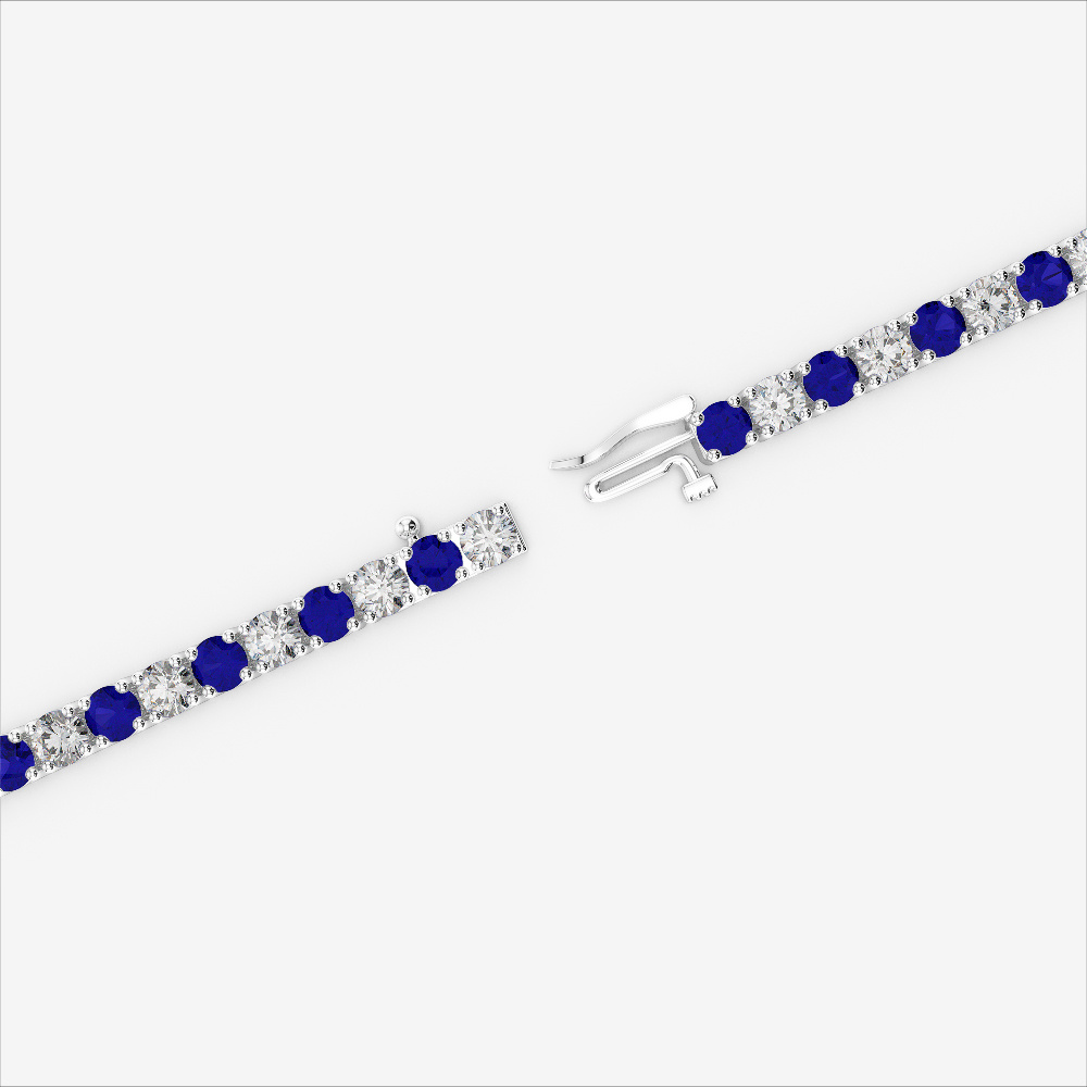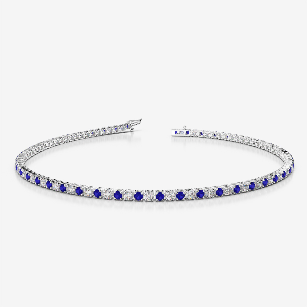Crafted for those who cherish elegance, this round-cut tennis bracelet features glowing blue sapphires and dazzling diamonds. A perfect luxury piece for you or a loved one.