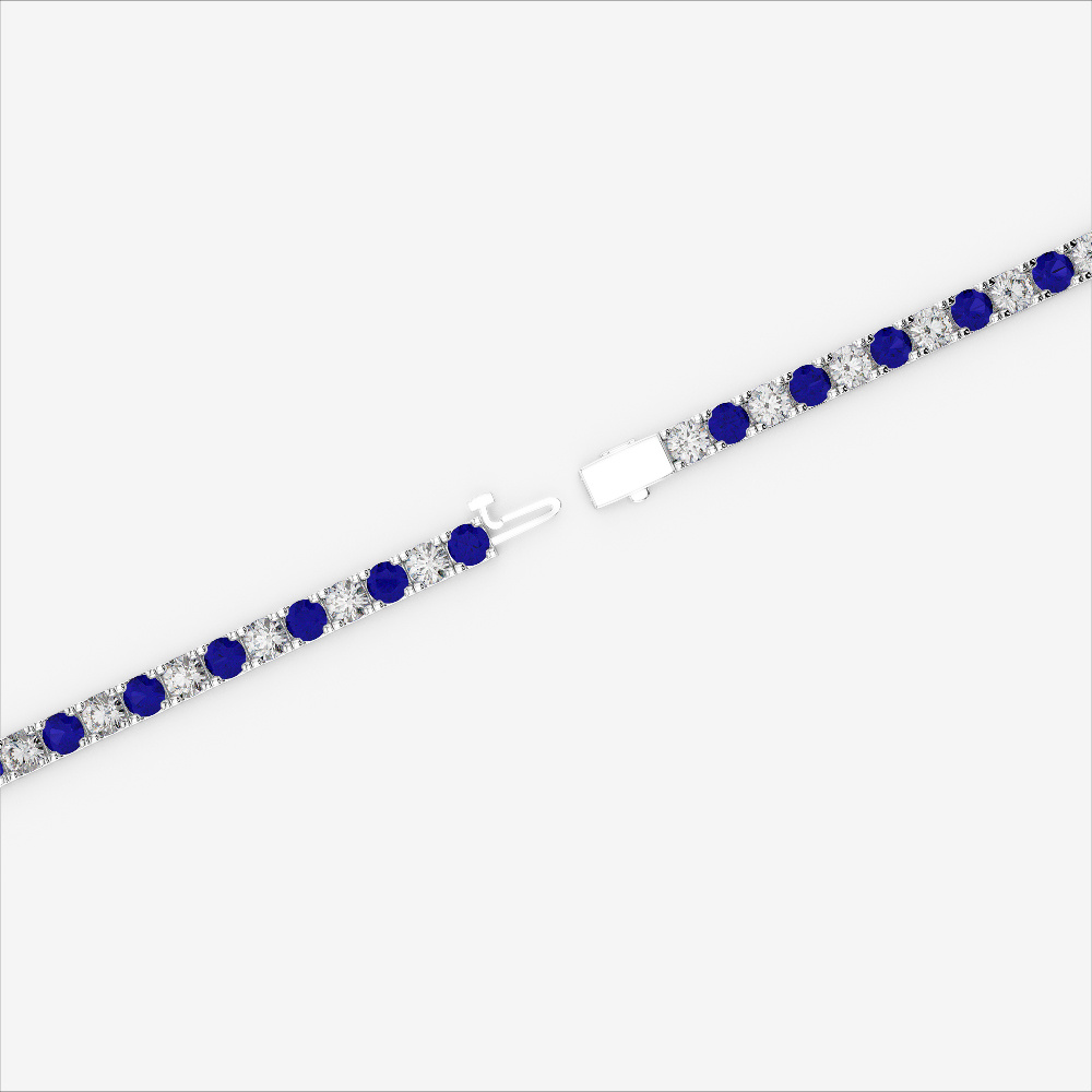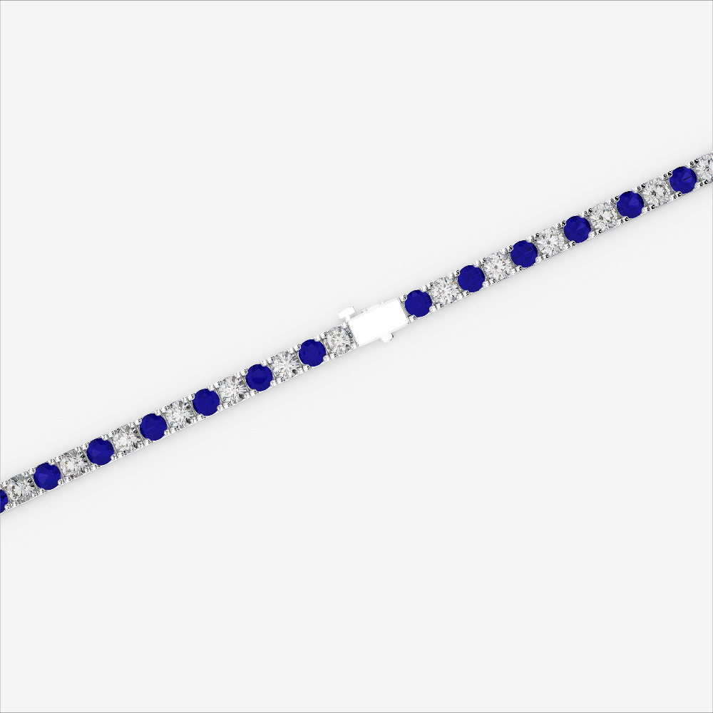 Make every moment shine with our round-cut blue sapphire and diamond tennis bracelet. The prong setting secures each stone beautifully, allowing light to dance across every blue sapphire and diamond. This timeless piece adds refined luxury to your wardrobe, ideal for day or evening wear. A perfect present for yourself or someone cherished—it brings elegance that speaks without words.