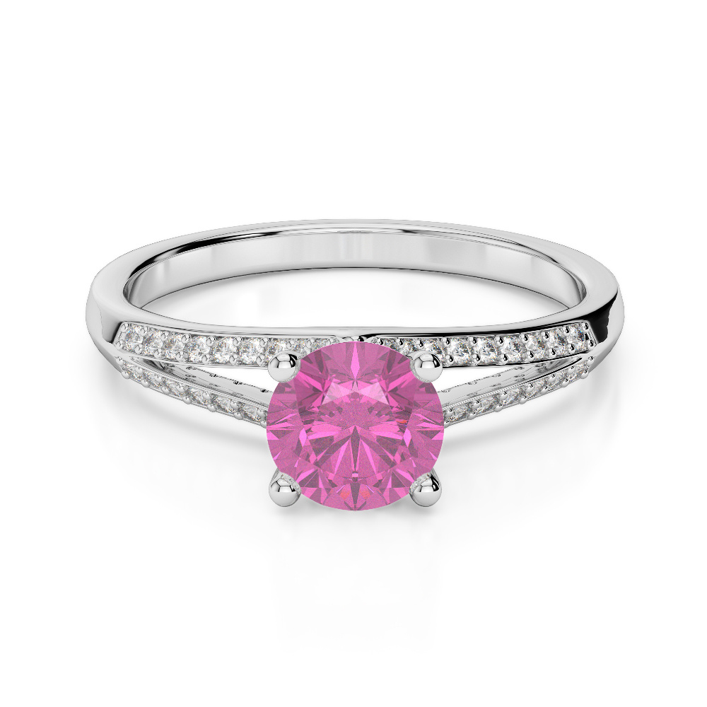 Prong Set Diamond and Pink Sapphire Engagement Ring 0276
