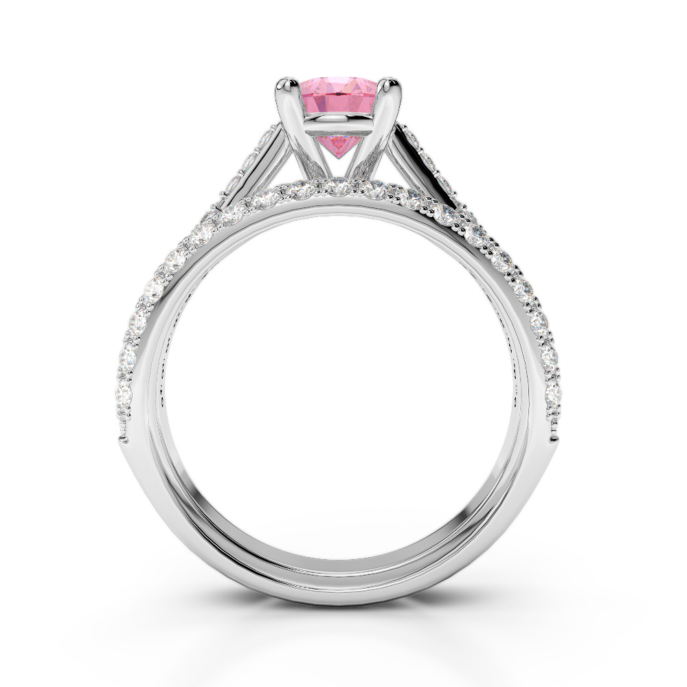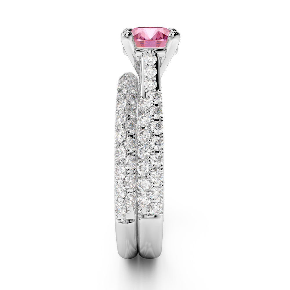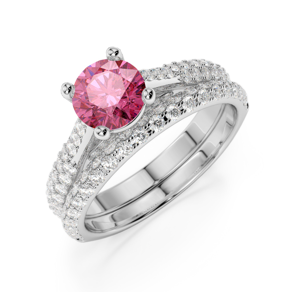 Prong Set Diamond and Pink Tourmaline Bridal Set Ring 0330
