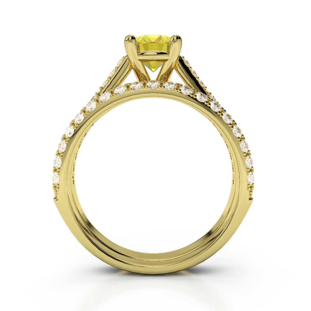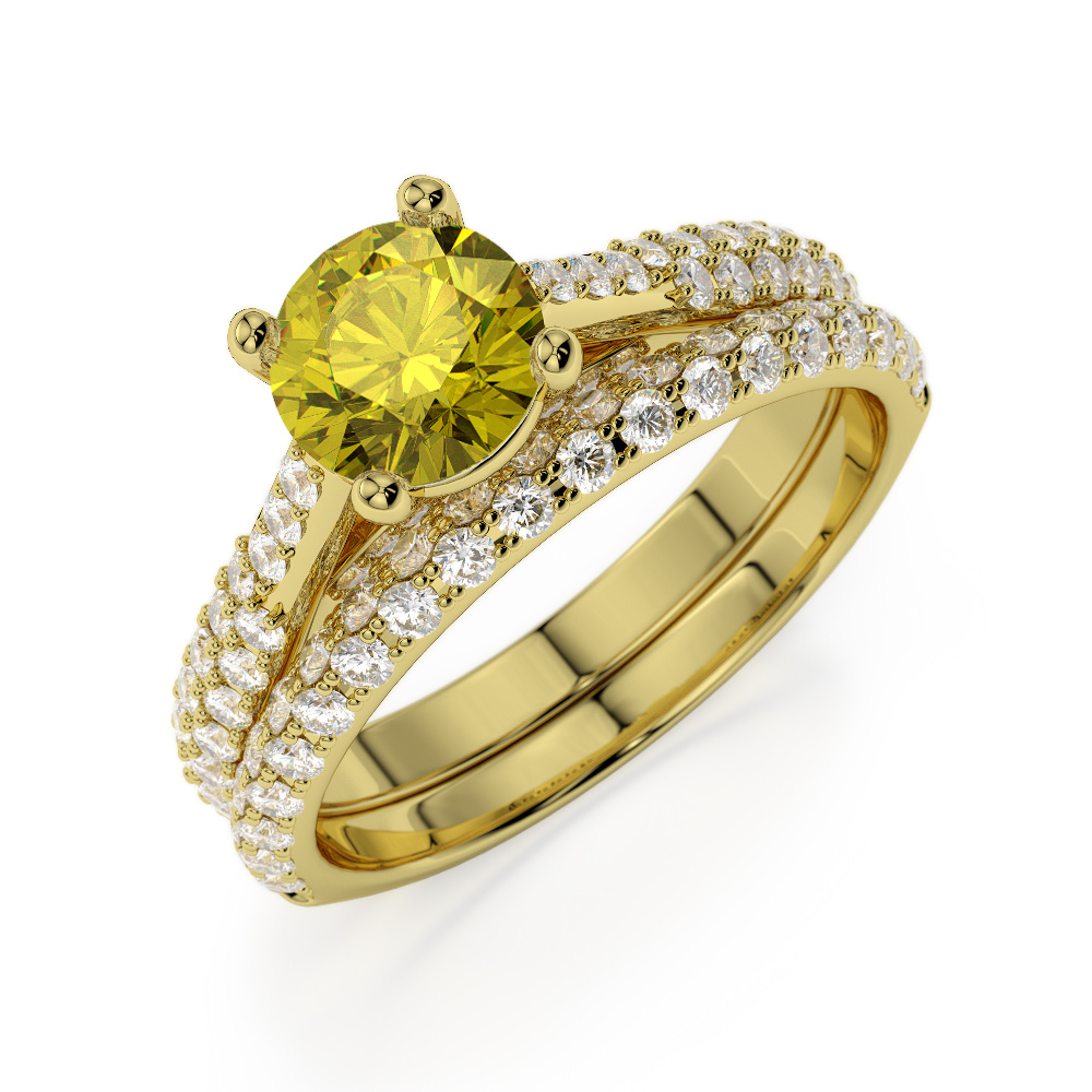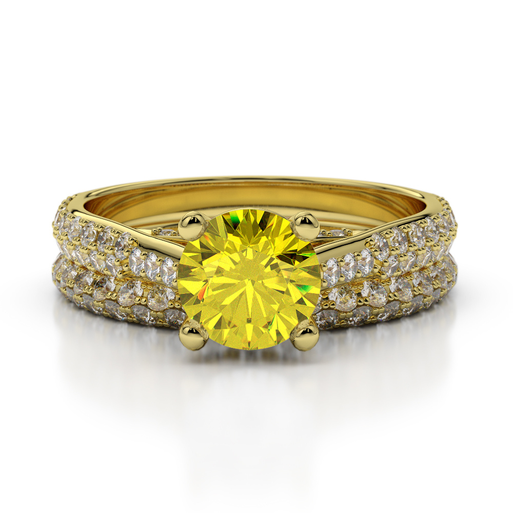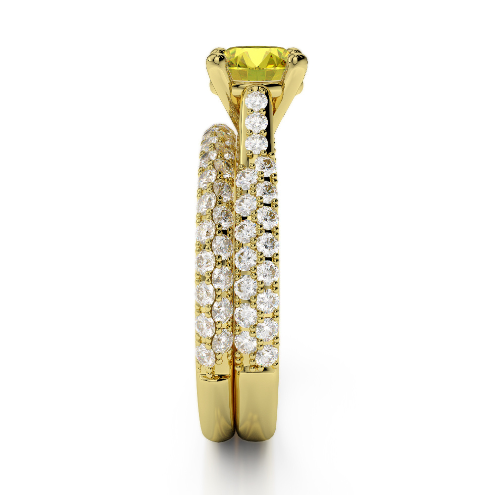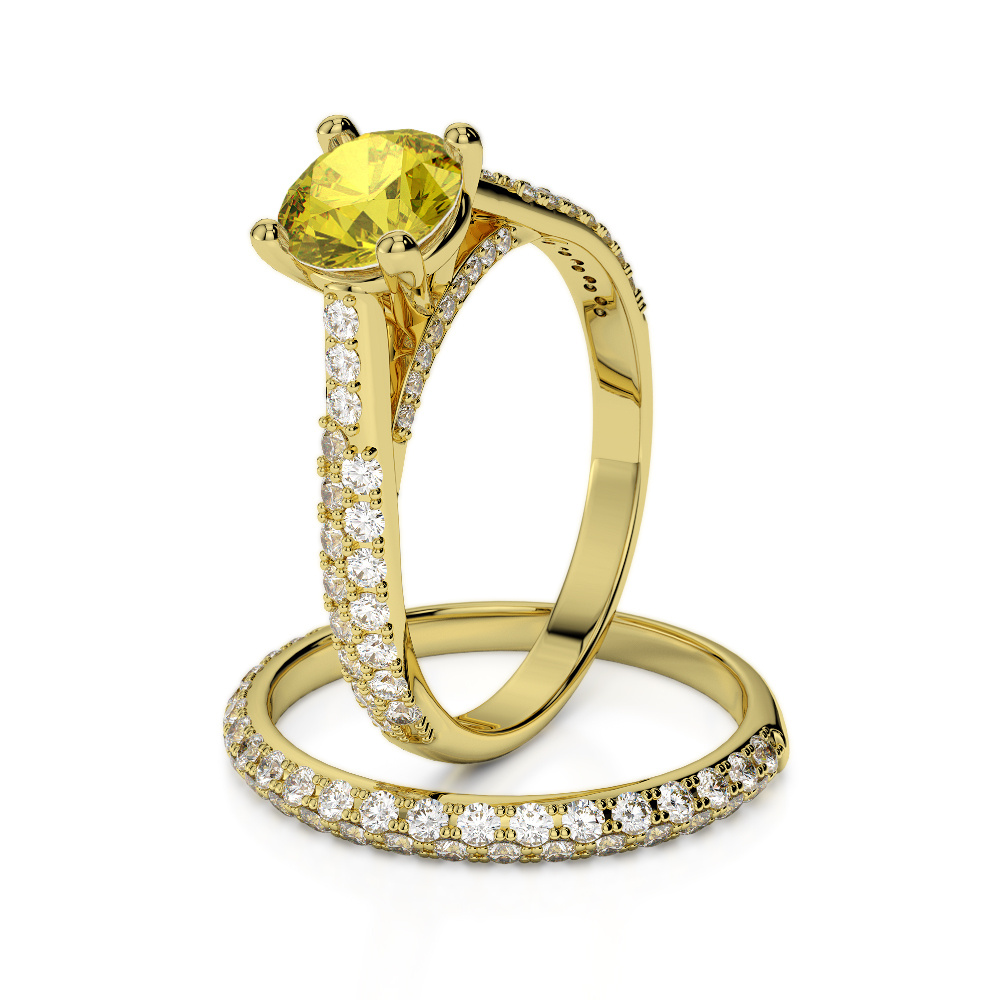 Prong Set Diamond and Yellow Sapphire Bridal Set Ring 0330