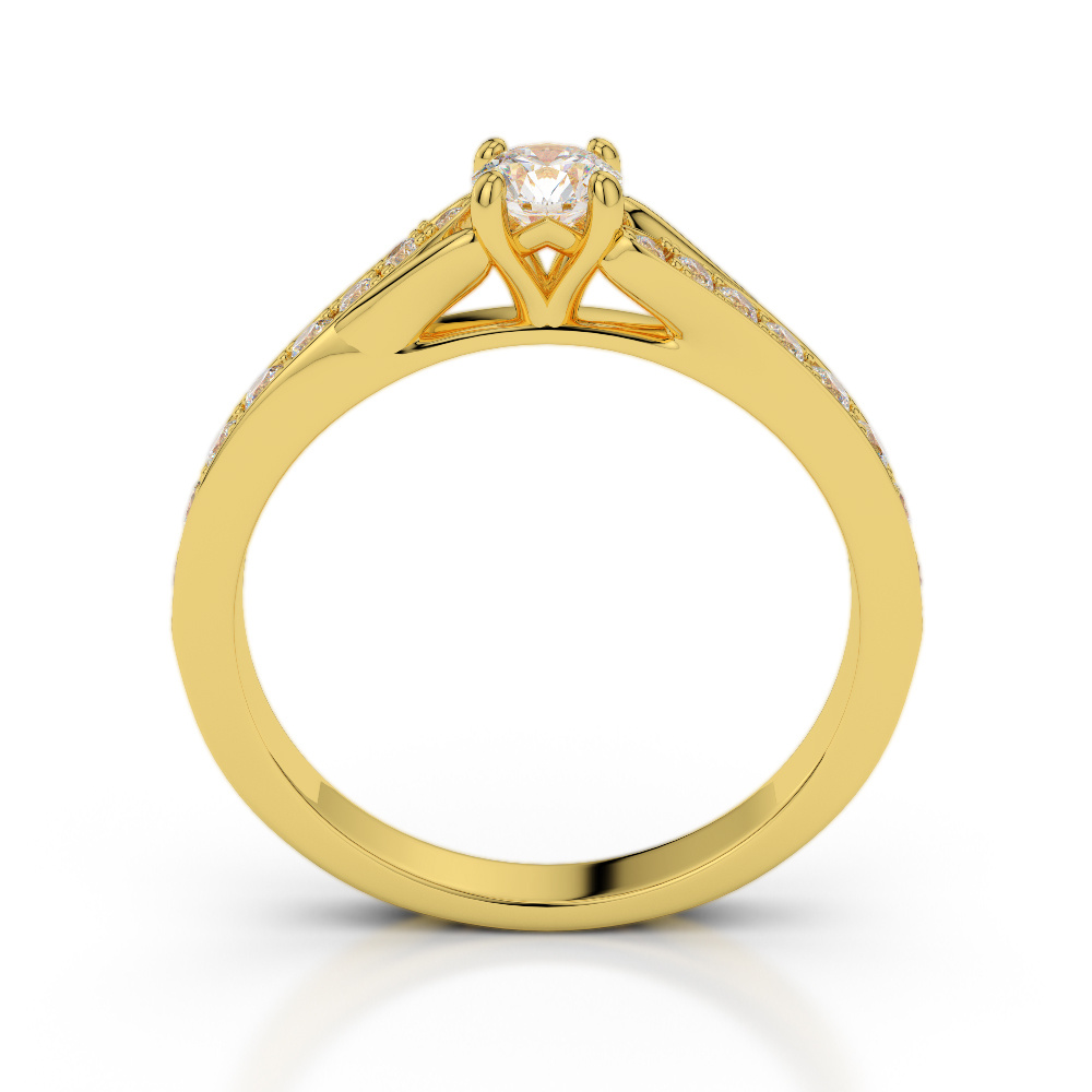 This exquisite Diamond Engagement Ring features a stunning round brilliant cut diamond, expertly set in a classic prong setting to maximize its brilliance and sparkle. The prongs securely hold the diamond while allowing light to enter from all angles, enhancing its fire and scintillation. As the radiant centerpiece of this timeless design, the diamond beautifully symbolizes the eternal love and commitment shared between partners.