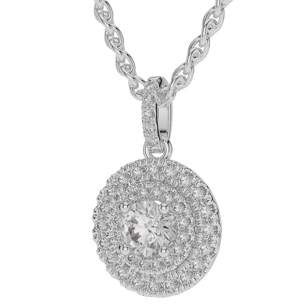 Prong Set Diamond Halo Necklaces in Gold / Platinum ATZNK-0580