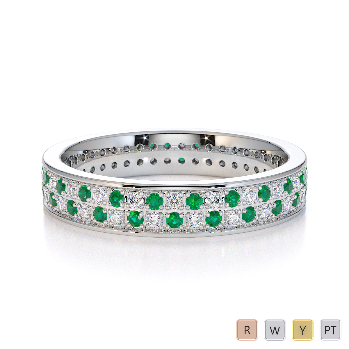 Prong Set Emerald and Diamond Full Eternity Ring 0430