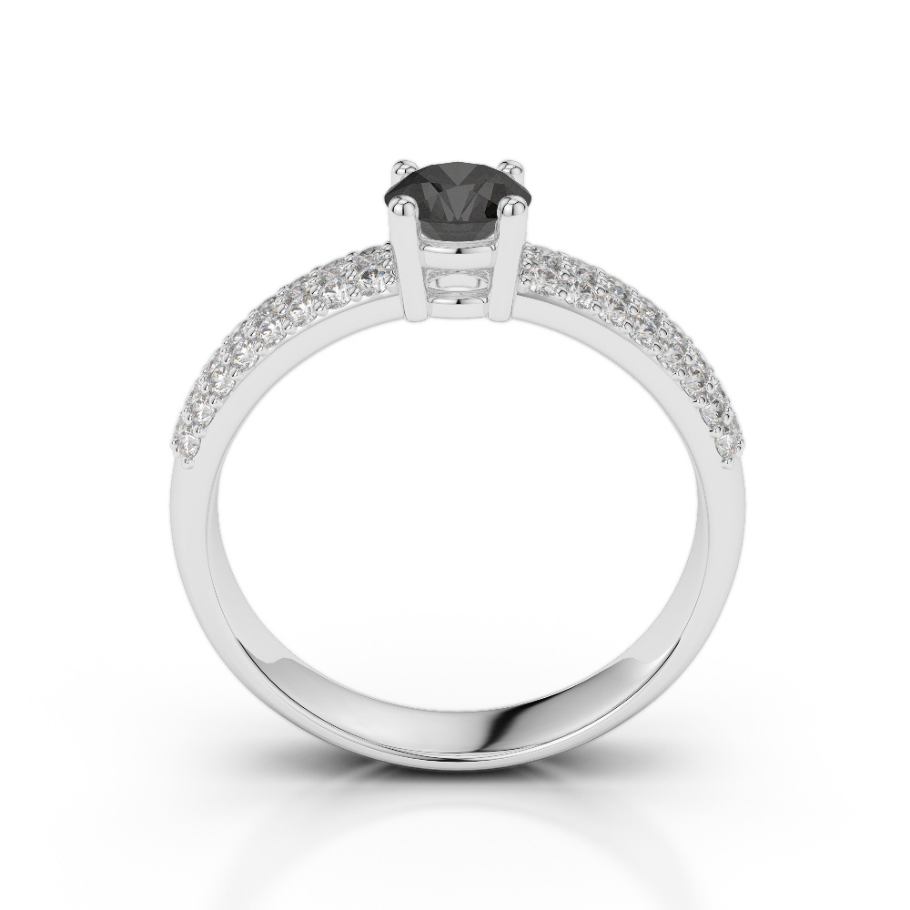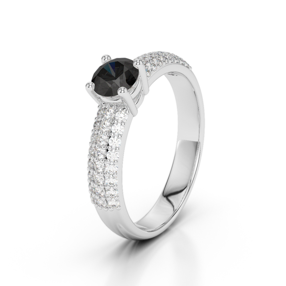 Elevate your love story with this exquisite Black Diamond And Diamond Engagement Ring, a true symbol of commitment and elegance. At its heart lies a stunning diamond center, expertly cut to maximize brilliance and sparkle, capturing the light with every movement. Surrounding this captivating centerpiece is a halo of prong set diamonds, meticulously set to create a seamless flow of radiance that enhances the overall allure of the ring.