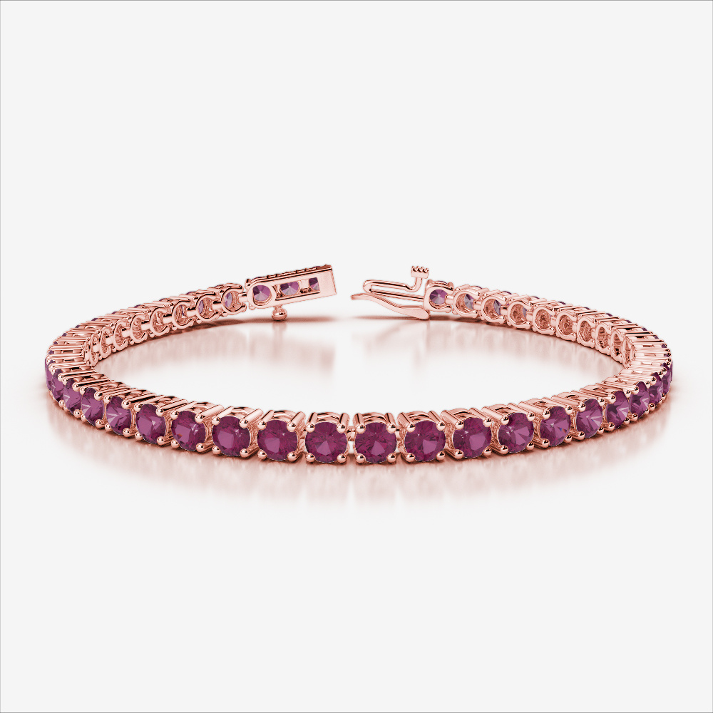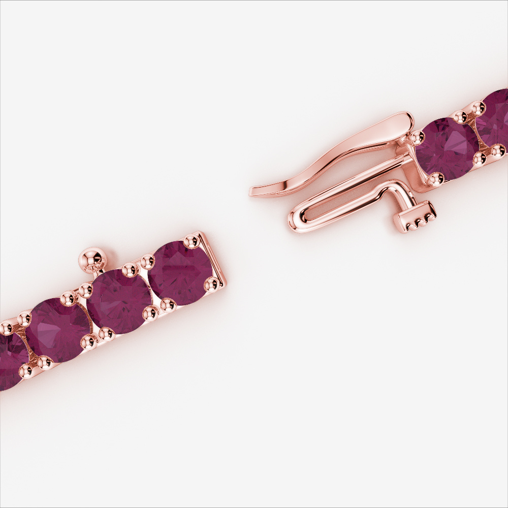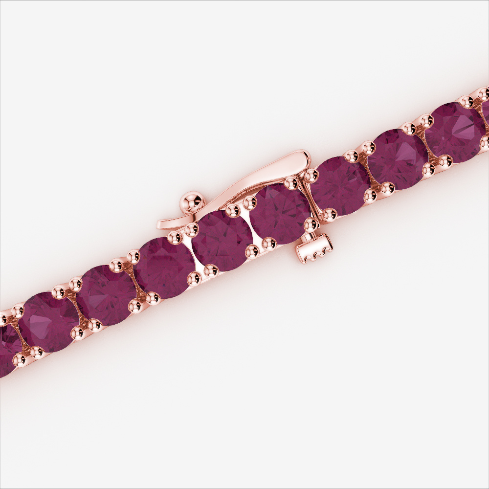 Celebrate enduring style with this Round Cut Ruby Tennis Bracelet. Every Ruby is handpicked for brilliance and clarity, set to allow maximum light play. The prong setting enhances sparkle while maintaining a refined aesthetic, offering a perfect blend of timeless elegance and contemporary sophistication.