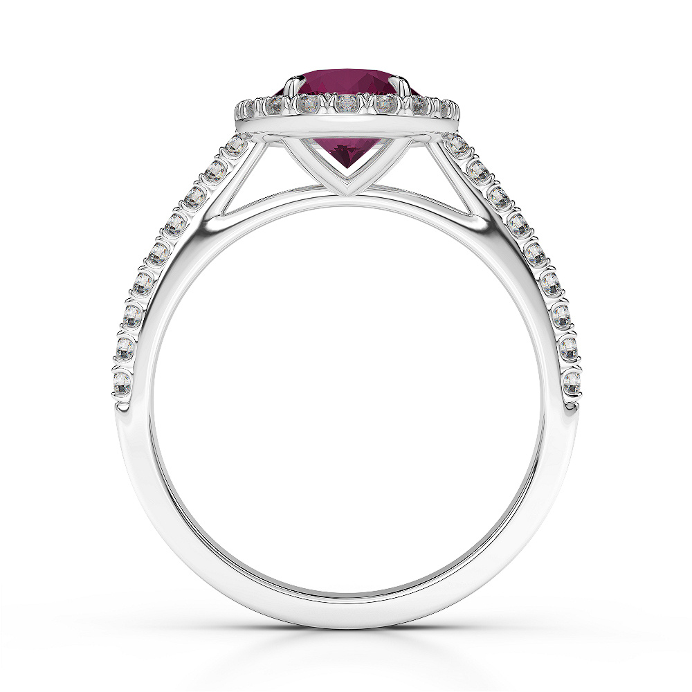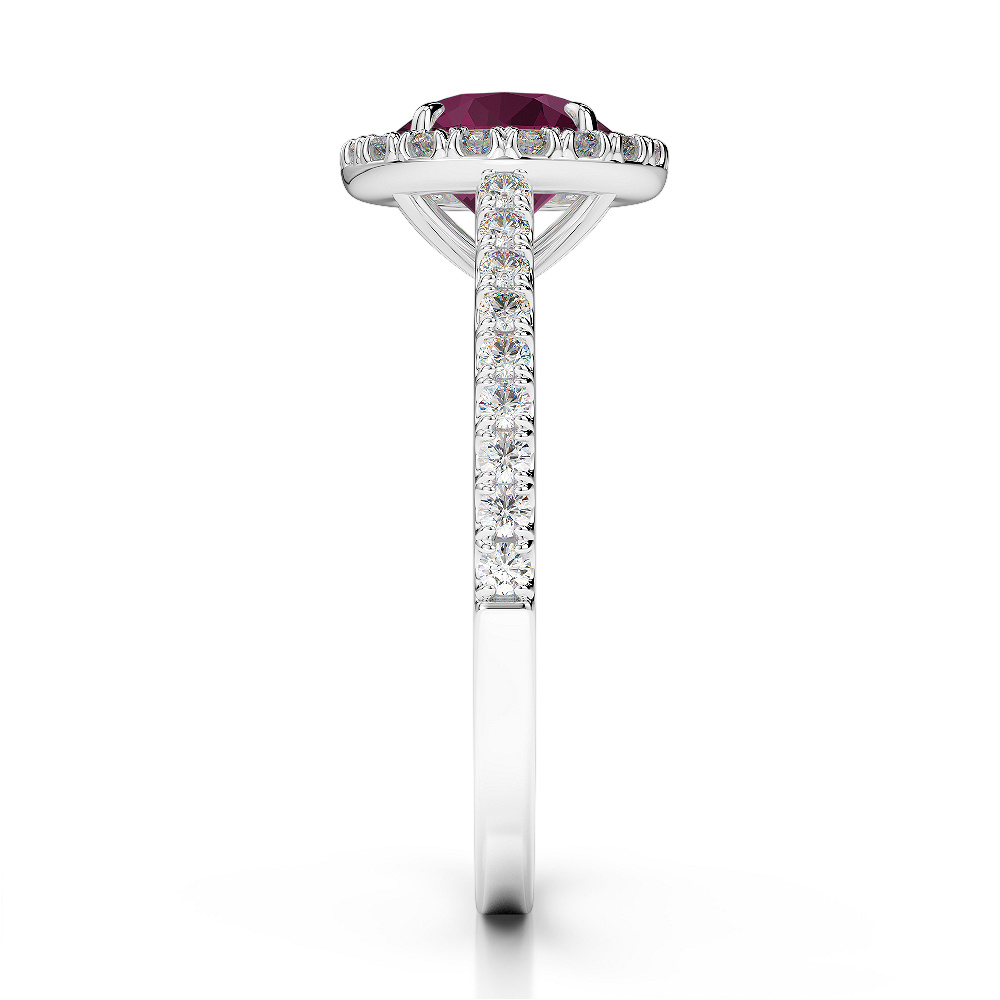 Indulge in the elegance of our Round Ruby And Diamond Engagement Ring, featuring a Ruby secured in a classic prong setting. Surrounded by sparkling diamonds, this luxurious piece radiates timeless brilliance and modern sophistication.