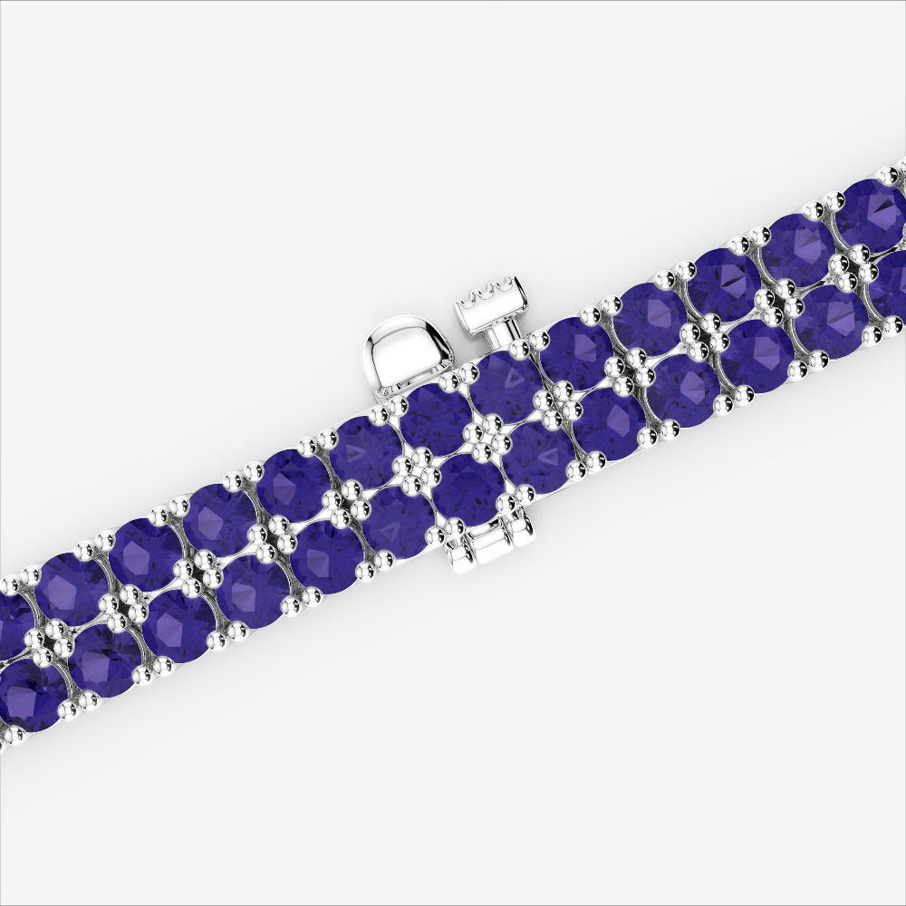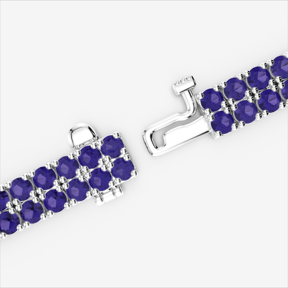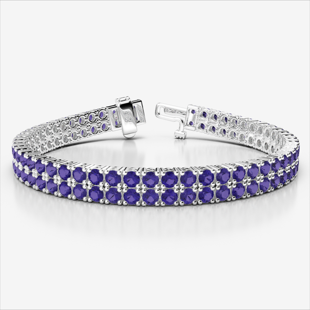 Elevate your collection with this Round Cut Tanzanite Tennis Bracelet. Prong set Tanzanites sparkle with intensity, while the fluid design ensures comfort and grace. A luxurious expression of beauty and refinement.