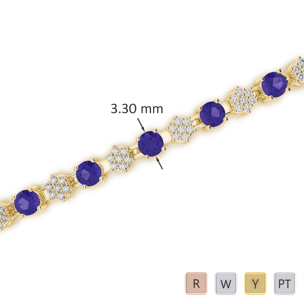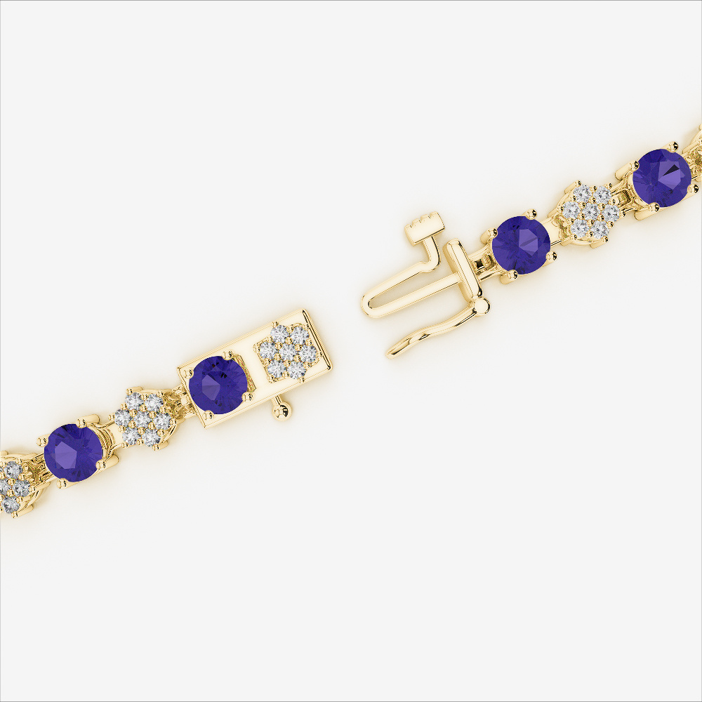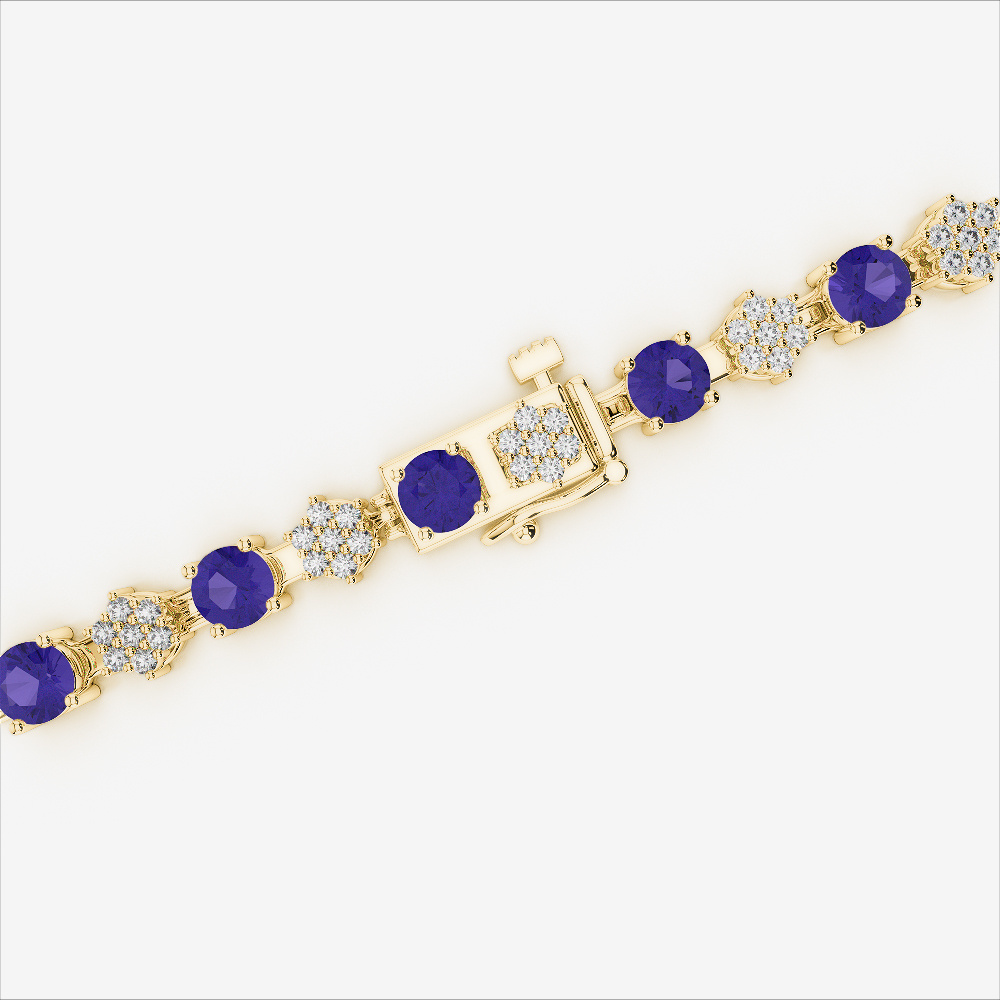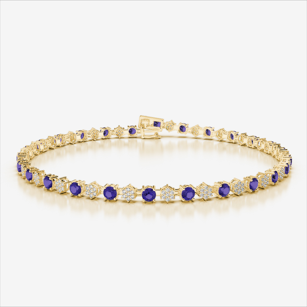 Crafted for those who cherish elegance, this round-cut tennis bracelet features glowing tanzanite and dazzling diamonds. A perfect luxury piece for you or a loved one.