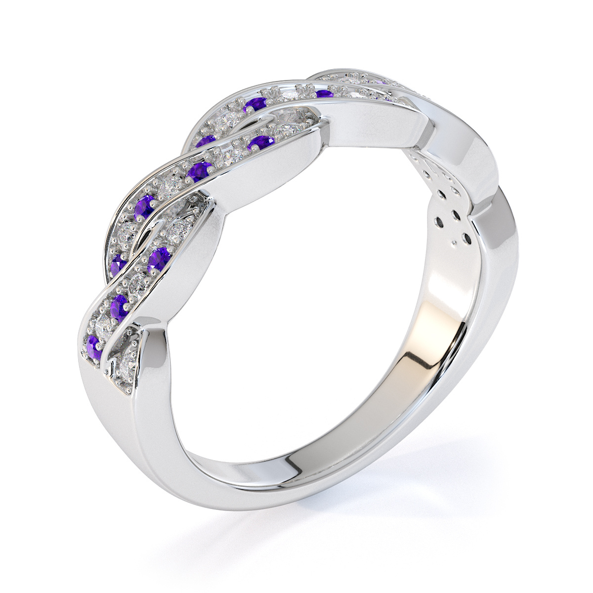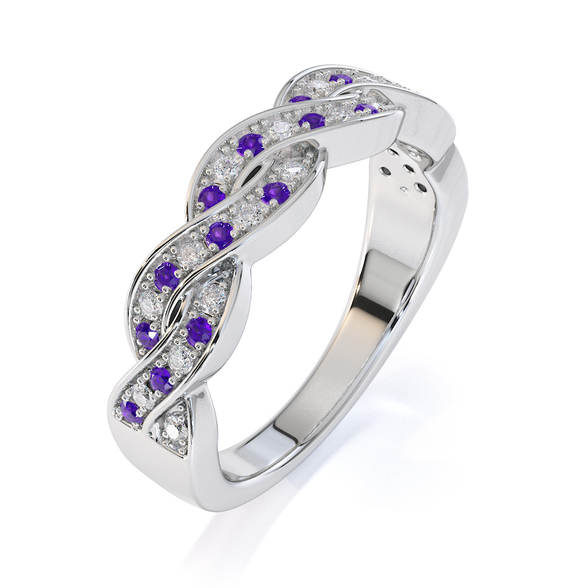 Round Cut Amethyst Half Eternity Ring With Diamond 0445