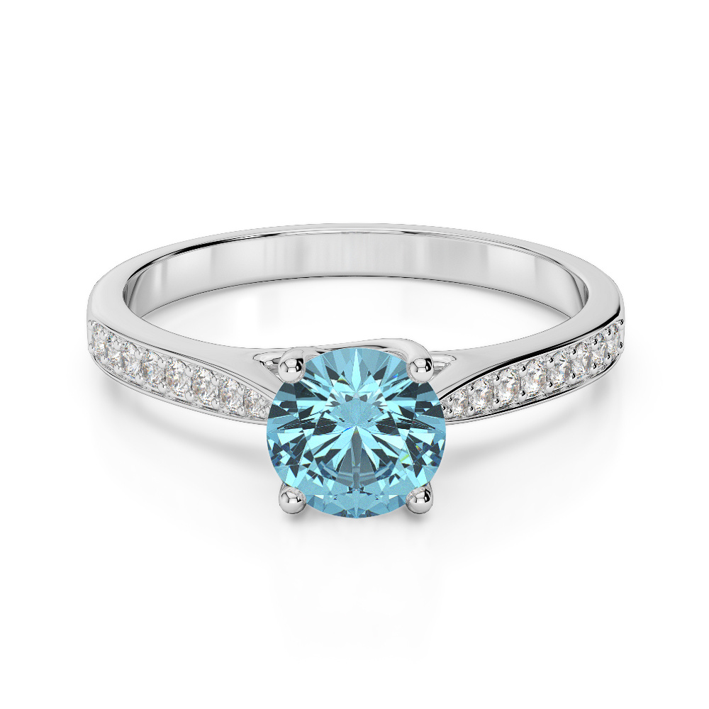 Round Cut Aquamarine Engagement Ring With Diamond 0284