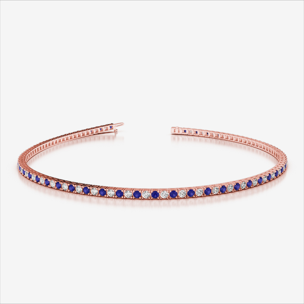 Step into elegance with our prong-set round-cut blue sapphire and diamond tennis bracelet. Designed to enchant, this piece blends the natural beauty of blue sapphires with the radiance of diamonds. A true expression of refined taste, it complements every outfit. Whether gifted or self-selected, this bracelet becomes a cherished part of your collection—graceful, glowing, and unforgettable.
