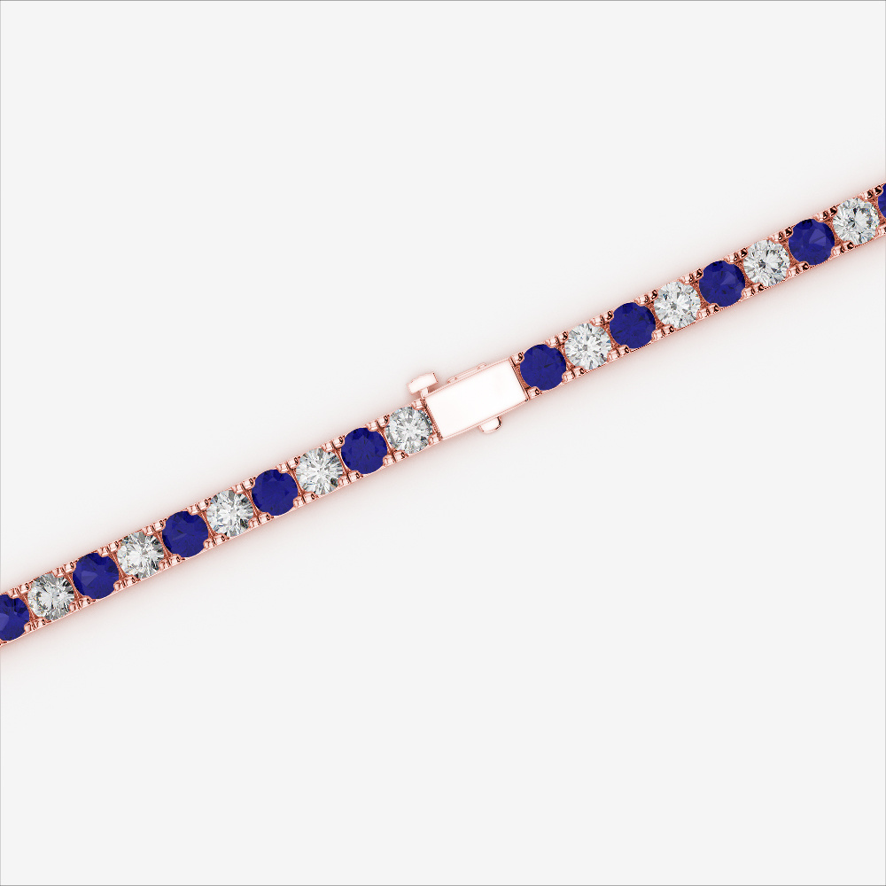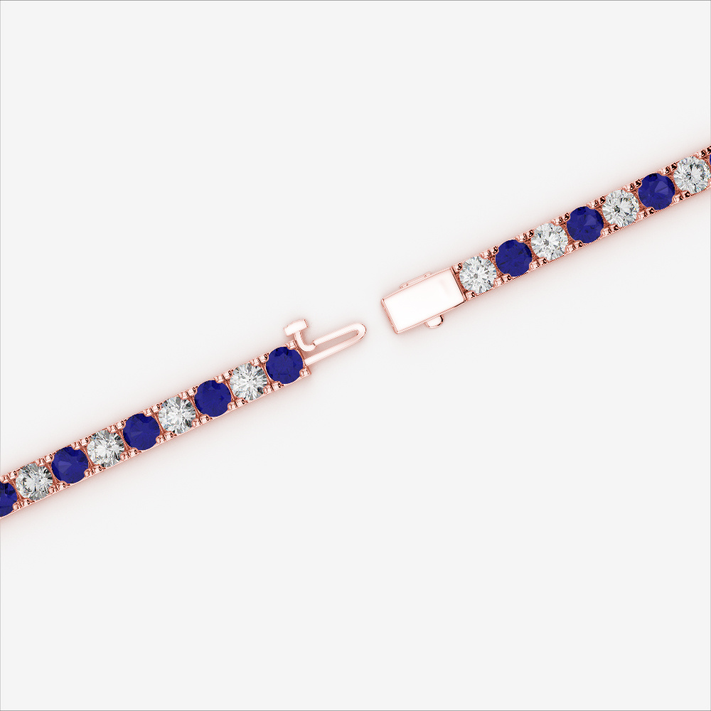Round Cut Blue Sapphire and Diamond Bracelet 0719