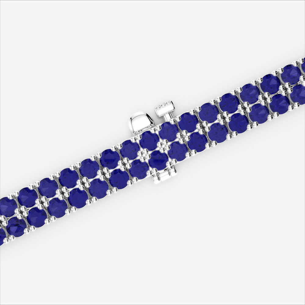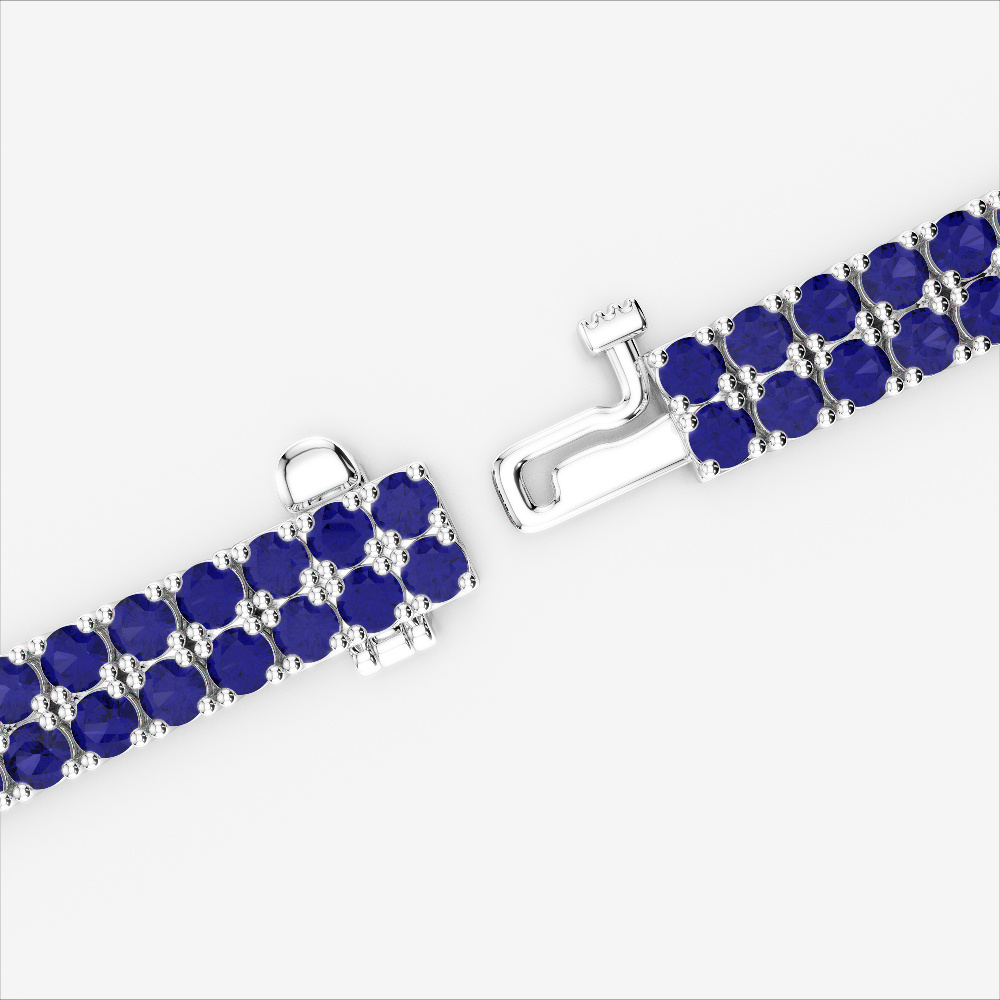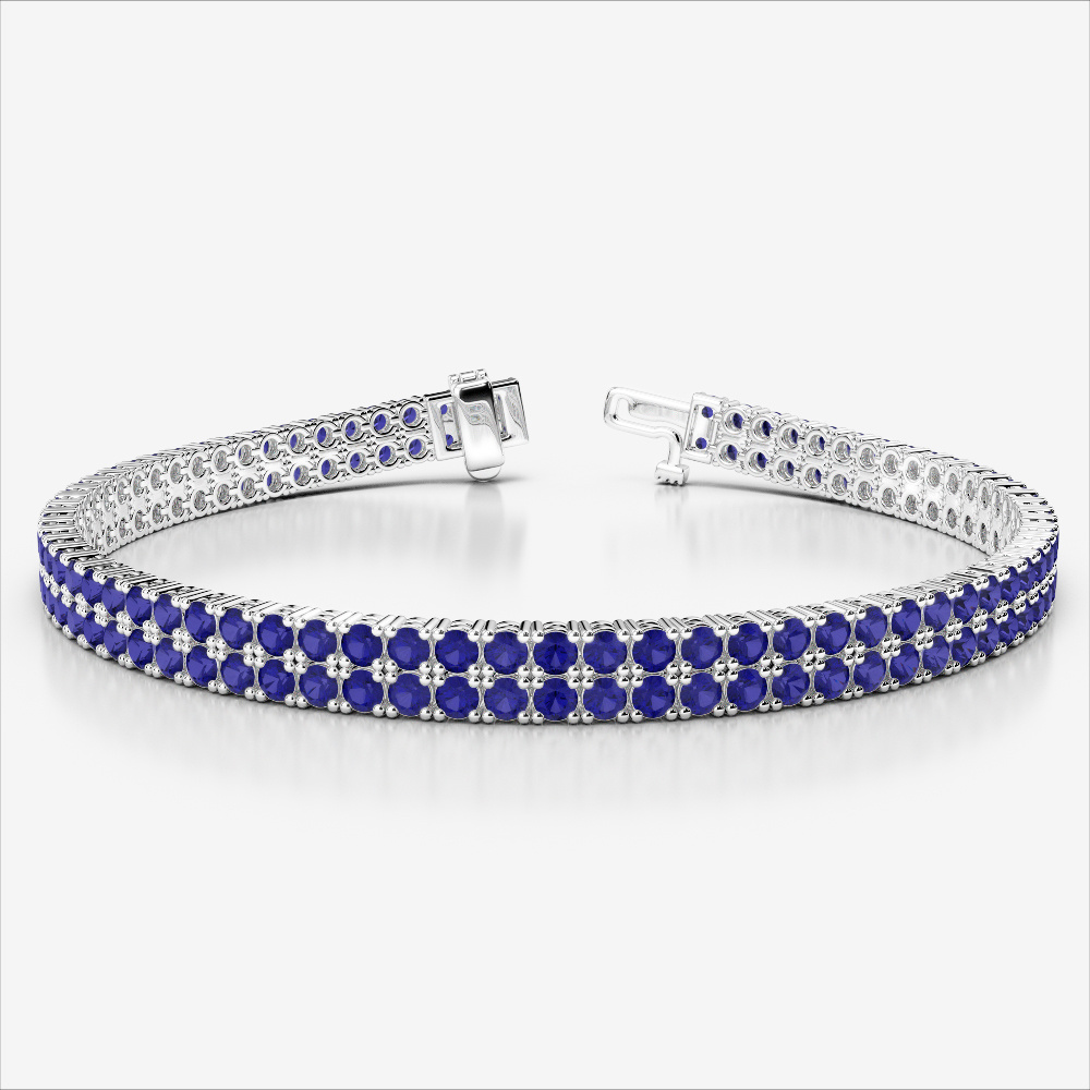 Simple yet luxurious, this Double Row Prong-Set Round-Cut Blue Sapphire Tennis Bracelet is adorned with Blue Sapphires chosen for maximum brilliance. It’s the perfect way to celebrate elegance in its most refined form.