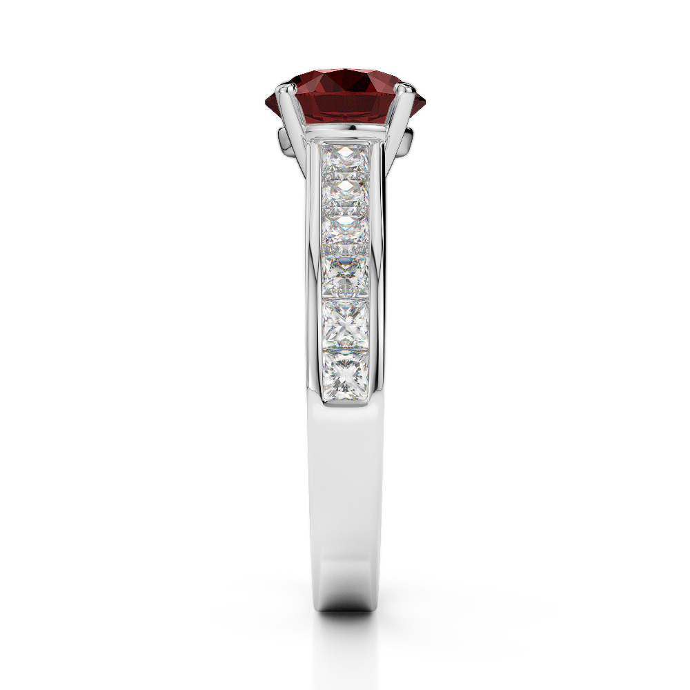Round Cut Garnet and Princess Diamond Engagement Ring 0222