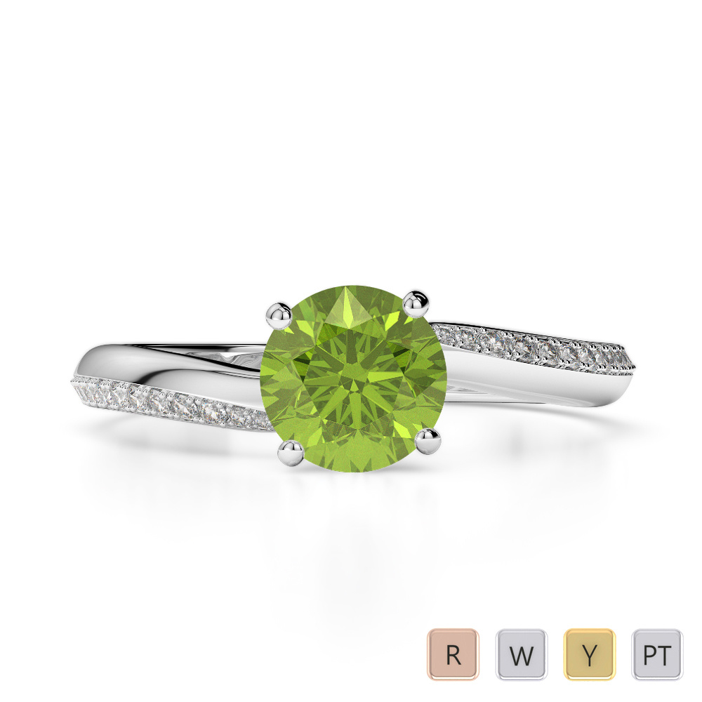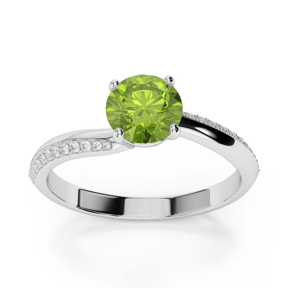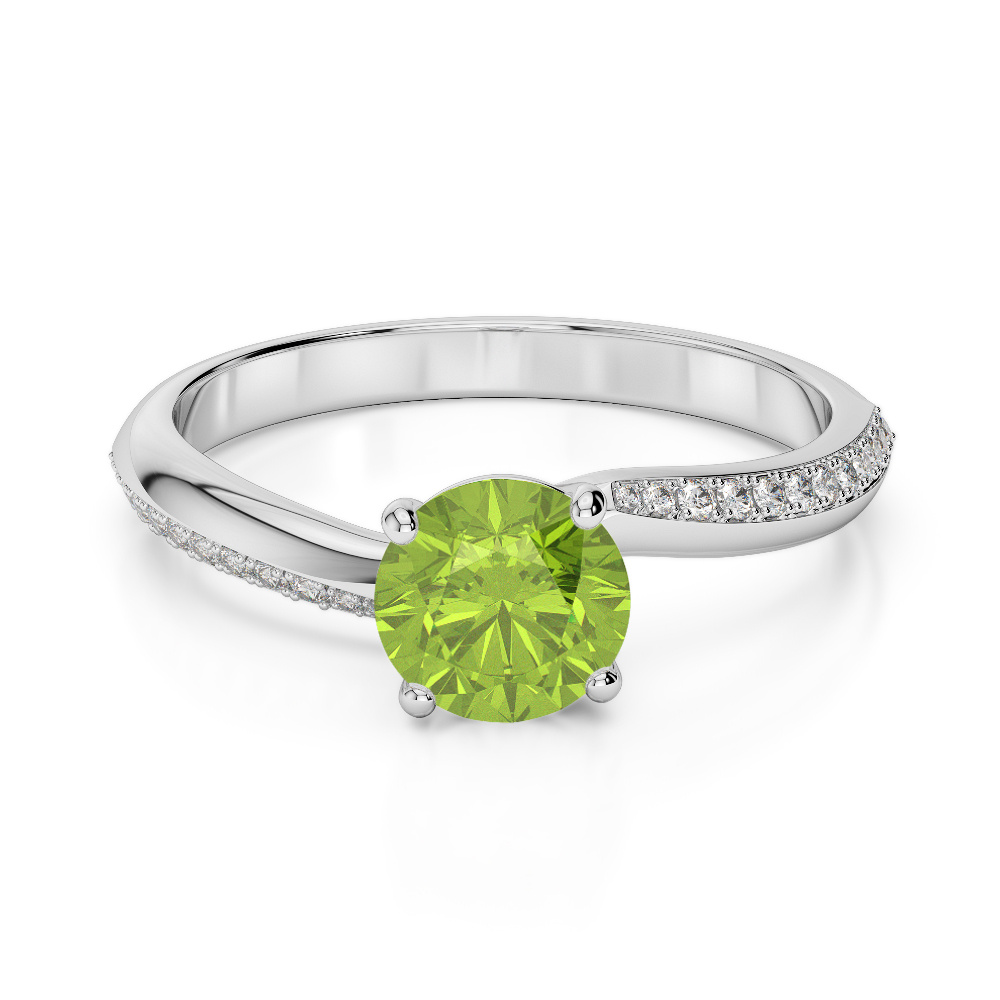 Round Cut Peridot & Diamond Engagement Ring 0266