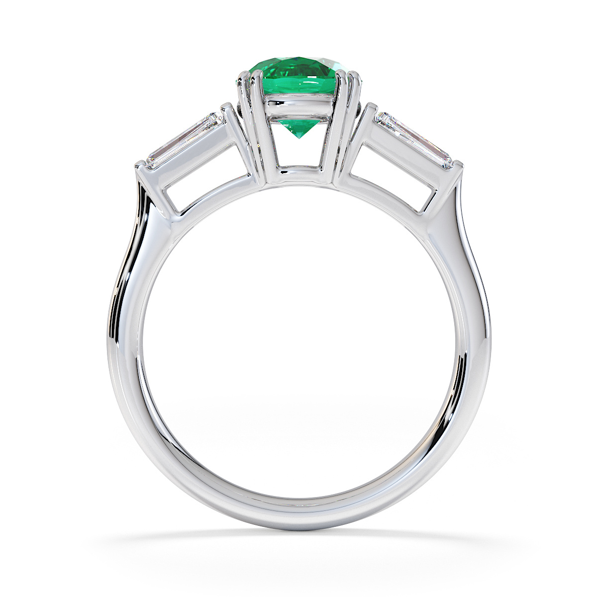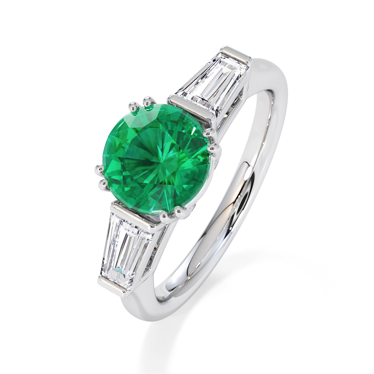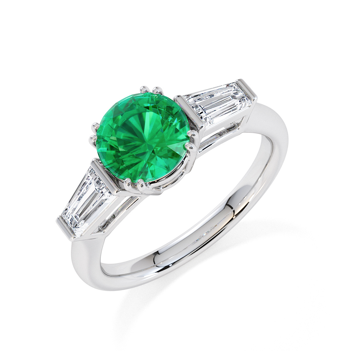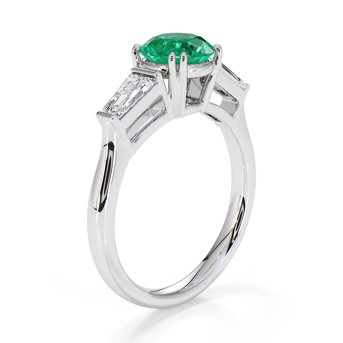 Tapered Baguette Diamond Engagement Ring with Emerald 0781